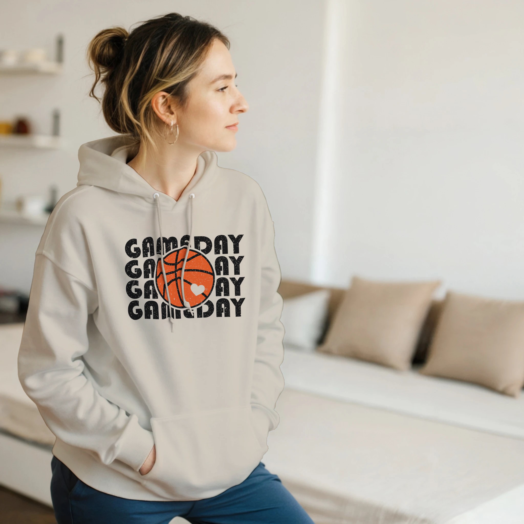 Show your passion for the game with our uniquely designed Basketball Gameday hoodie – where clever typography meets heartfelt team spirit.