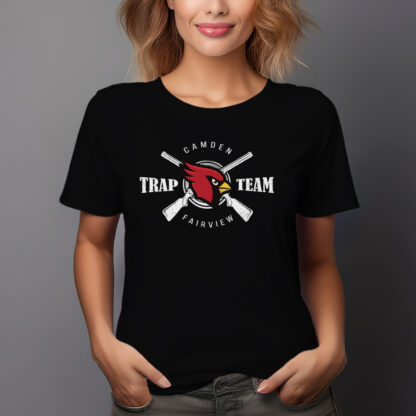 Represent your team with a design that blends tradition and intensity. This “Camden Fairview Trap Team” graphic features a bold cardinal mascot front and center, backed by crossed shotguns and a target-ring backdrop.