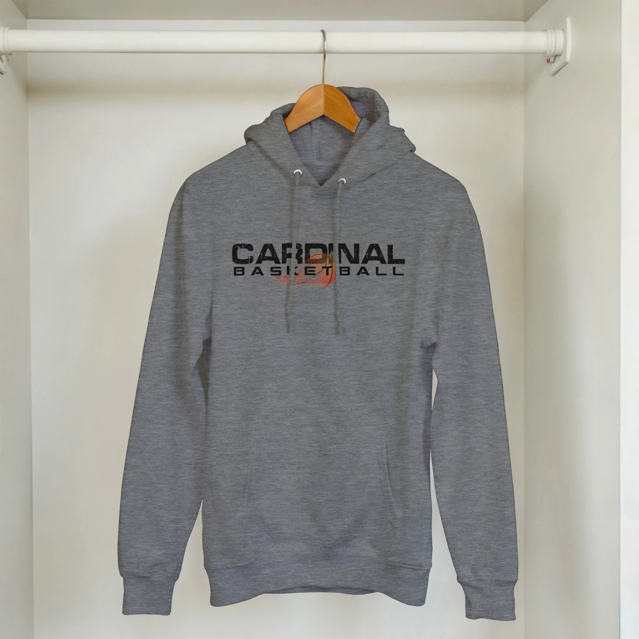 This hoodie is a dynamic representation of Cardinal Basketball energy and motion. The innovative dust effect creates the illusion of the basketball in action, capturing the excitement and intensity of the game in a single powerful image.