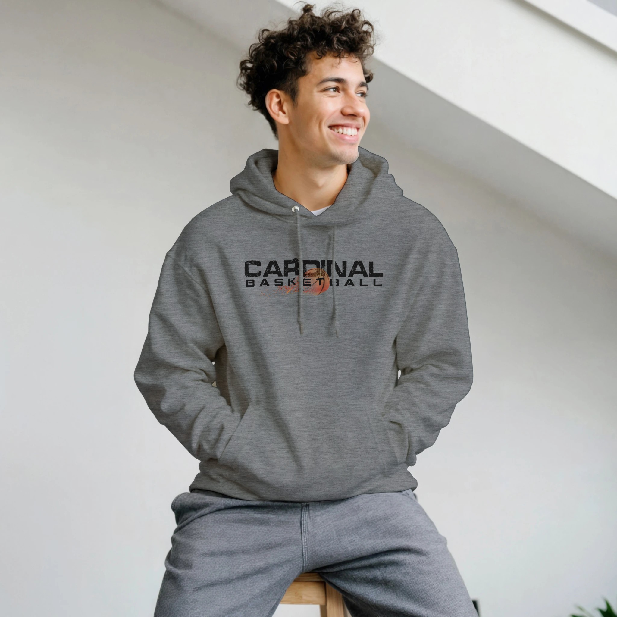 Showcase your Cardinal pride with our energetic motion-effect basketball hoodie – where classic team spirit meets modern graphic design.