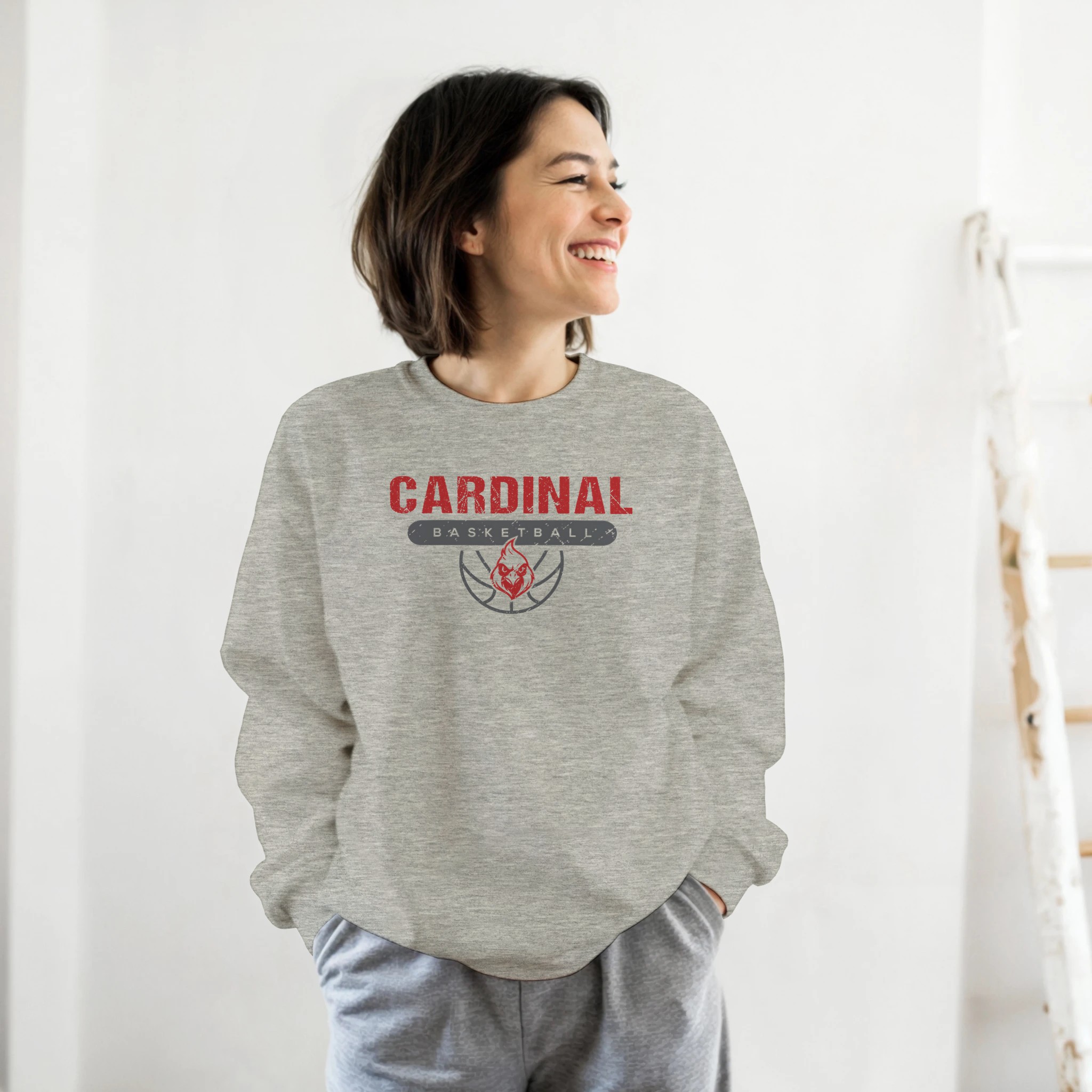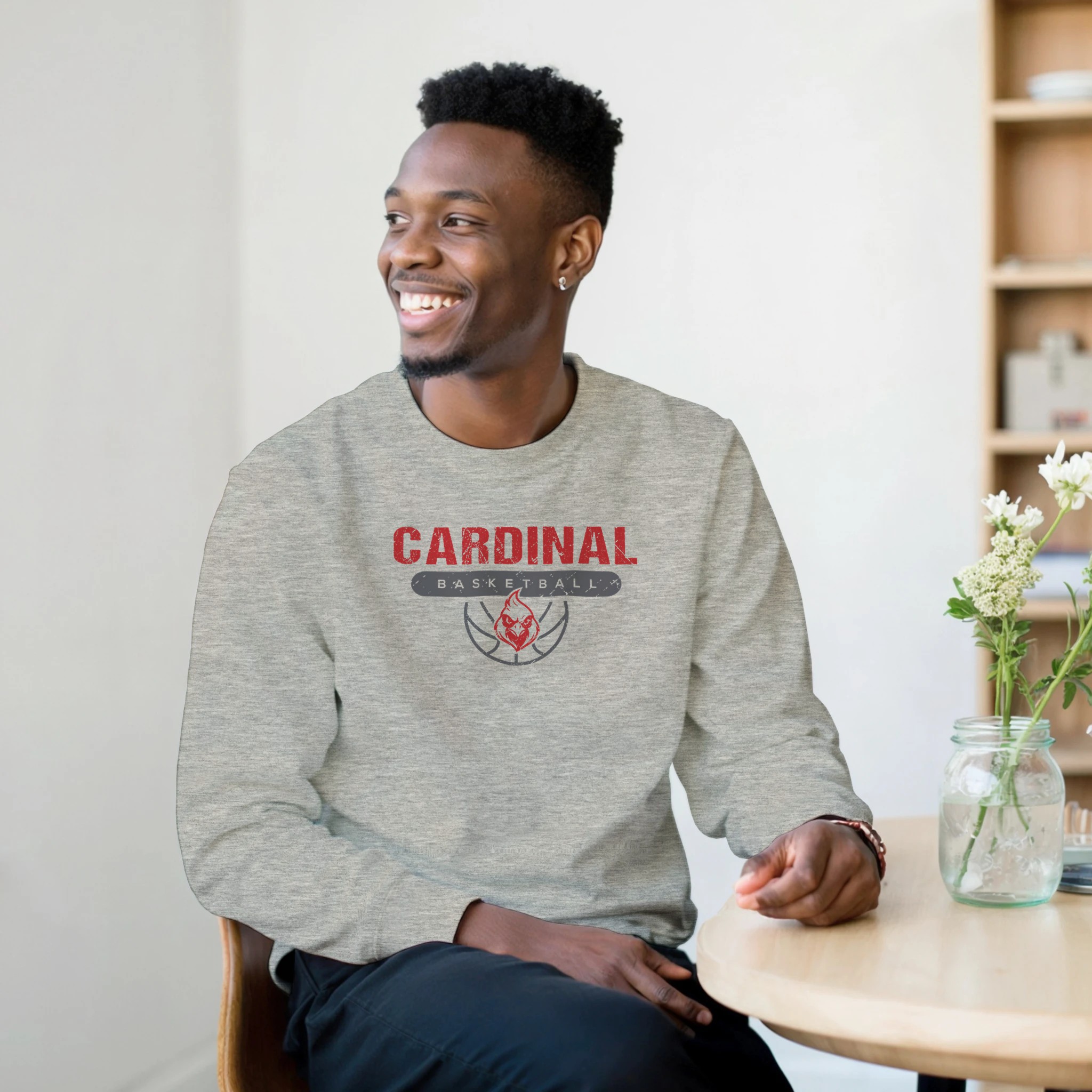 Showcase your Cardinal pride with our vintage-inspired Basketball Mascot sweatshirt – where team tradition meets modern style.