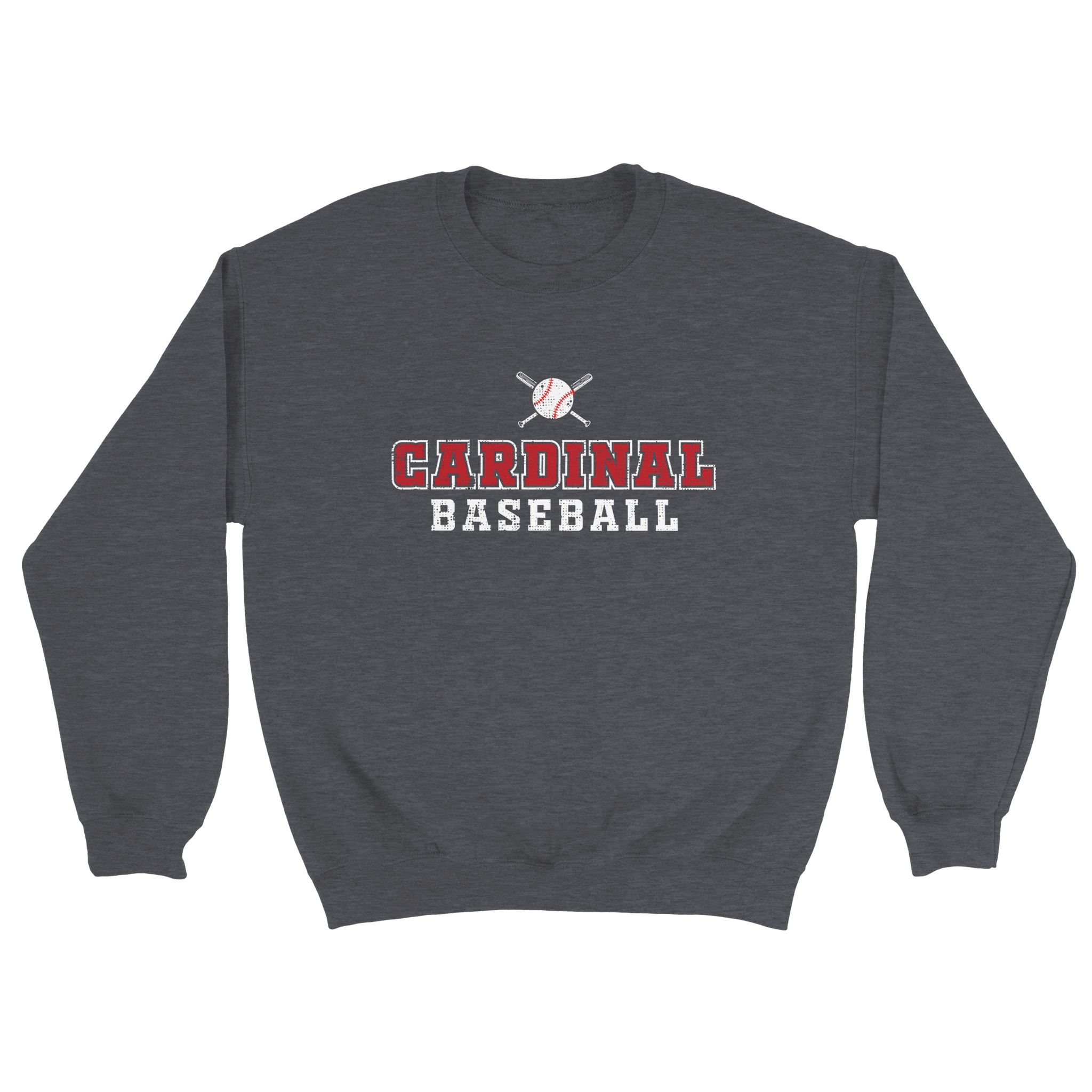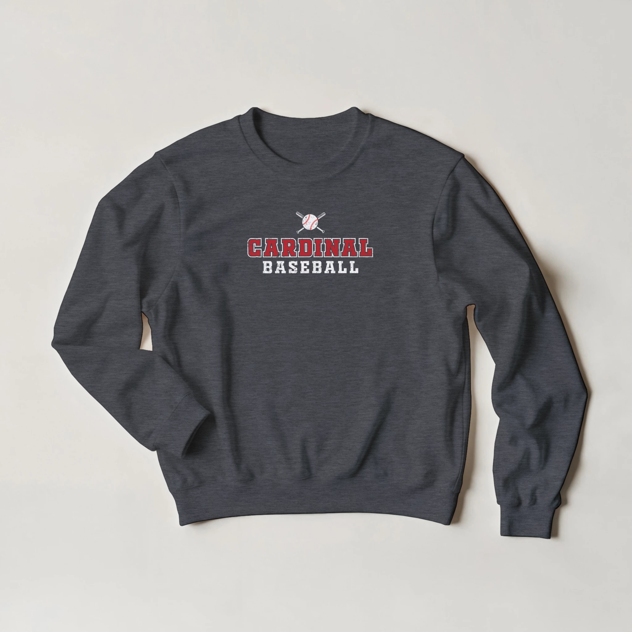 This Cardinal Baseball design delivers clean, classic team style with bold collegiate lettering and a vintage bat-and-ball emblem centered above the text. The crisp red and white layout gives the shirt a timeless athletic look perfect for players, parents, and fans who want something simple, sharp, and easy to wear.