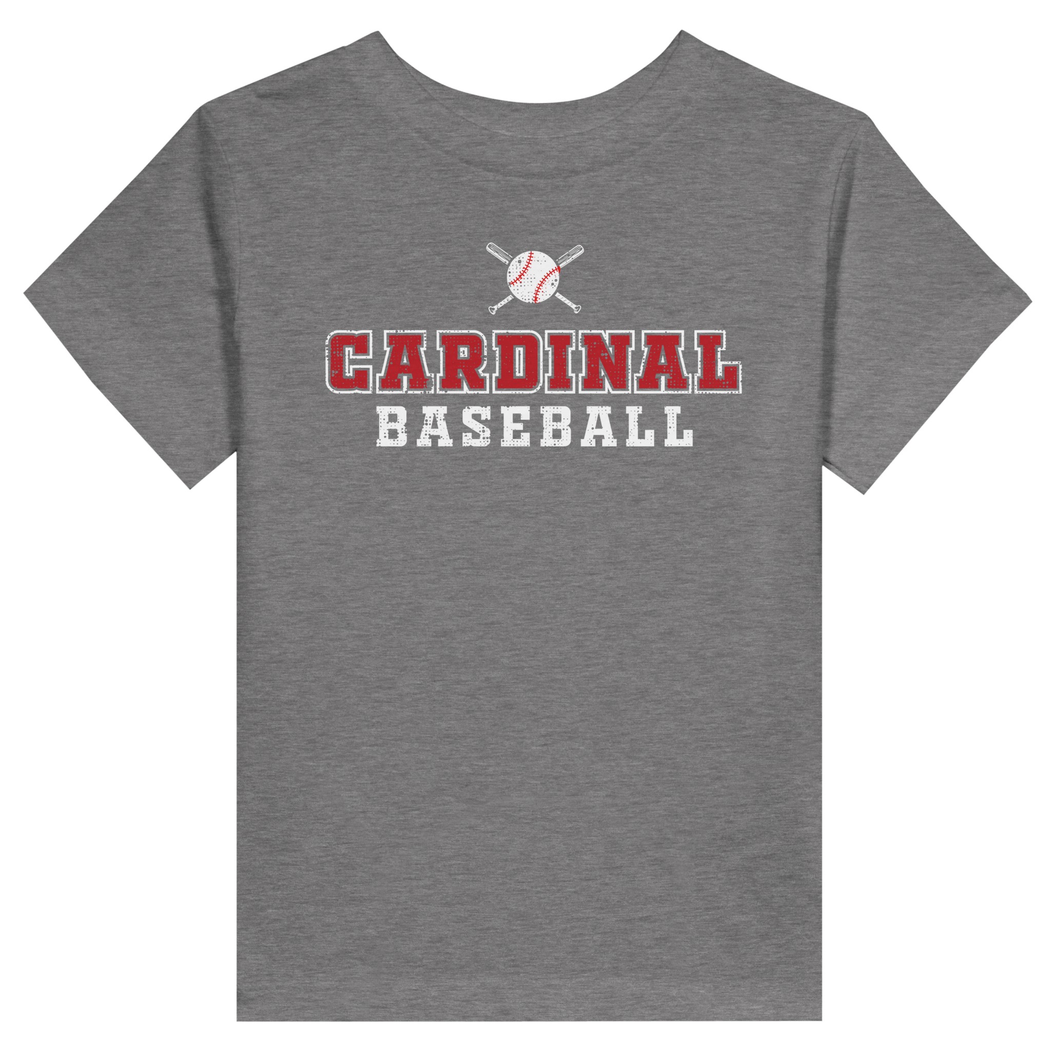 This Cardinal Baseball design delivers clean, classic team style with bold collegiate lettering and a vintage bat-and-ball emblem centered above the text. The crisp red and white layout gives the shirt a timeless athletic look perfect for players, parents, and fans who want something simple, sharp, and easy to wear.