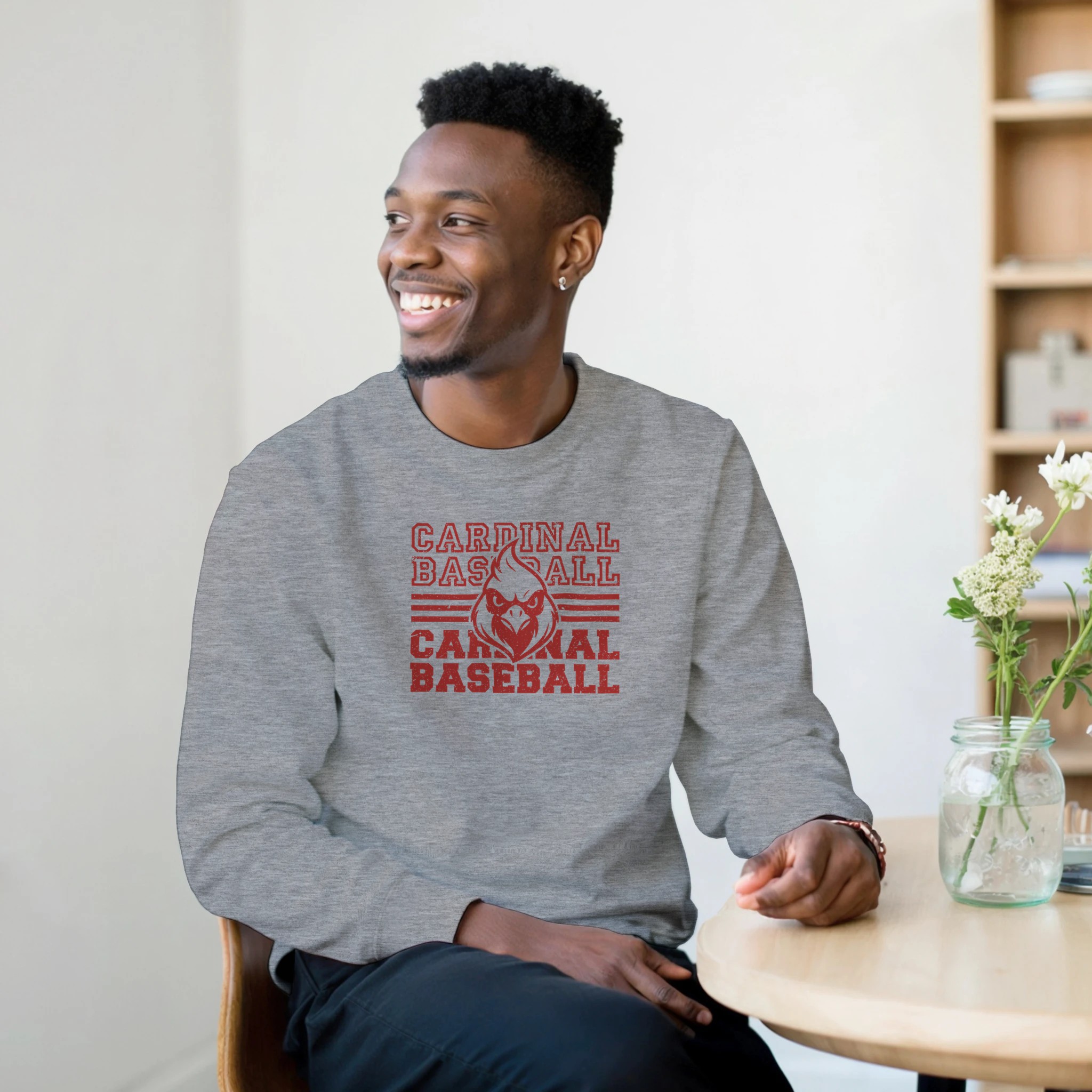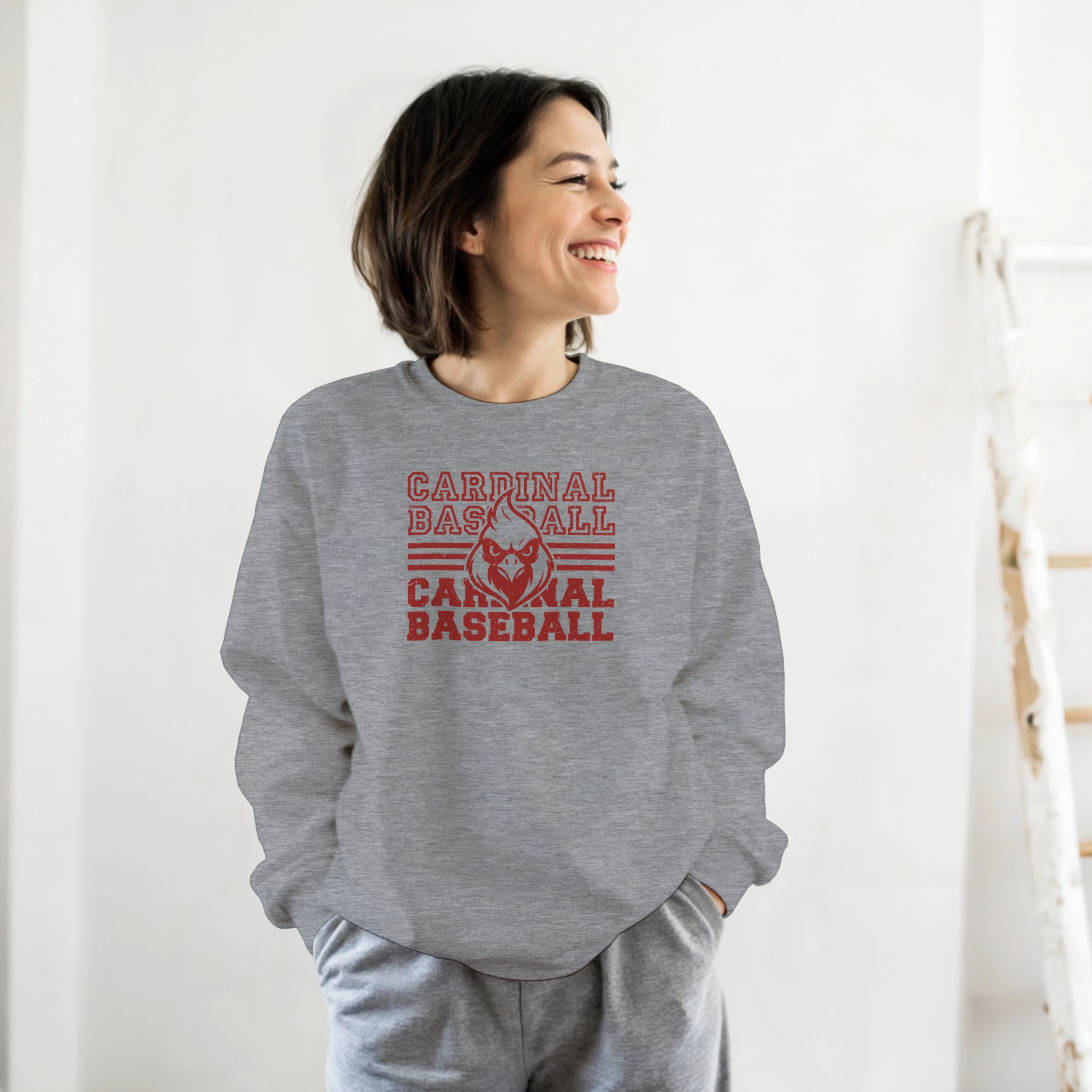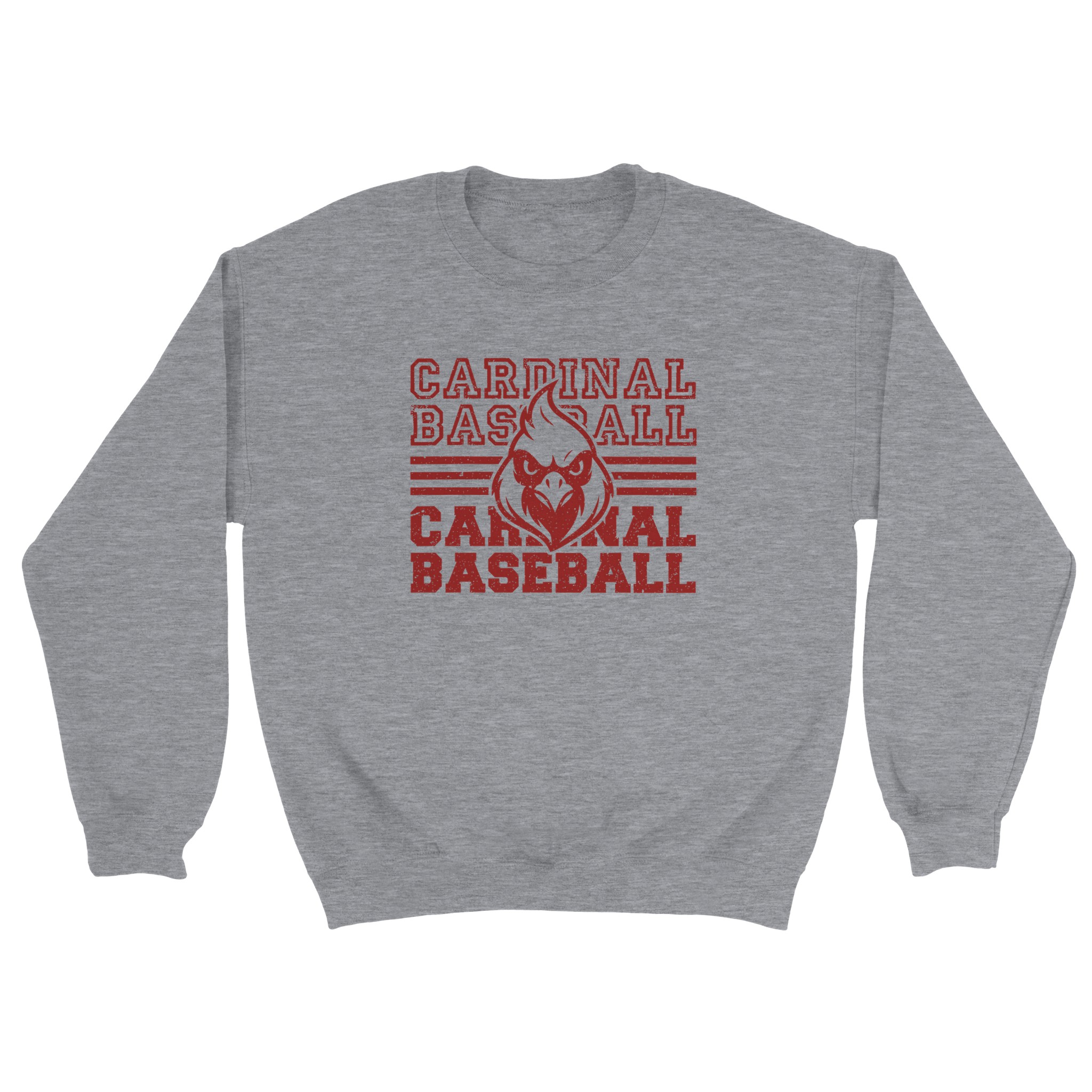 This Cardinal Baseball design delivers a bold, vintage athletic look with stacked lettering, horizontal stripe accents, and a fierce cardinal mascot front and center. The distressed print adds a retro, worn-in feel that makes the design stand out on game days, school events, or everyday casual wear. It’s a strong, classic layout that appeals to players, families, and fans who want to show their team spirit in a big way.
