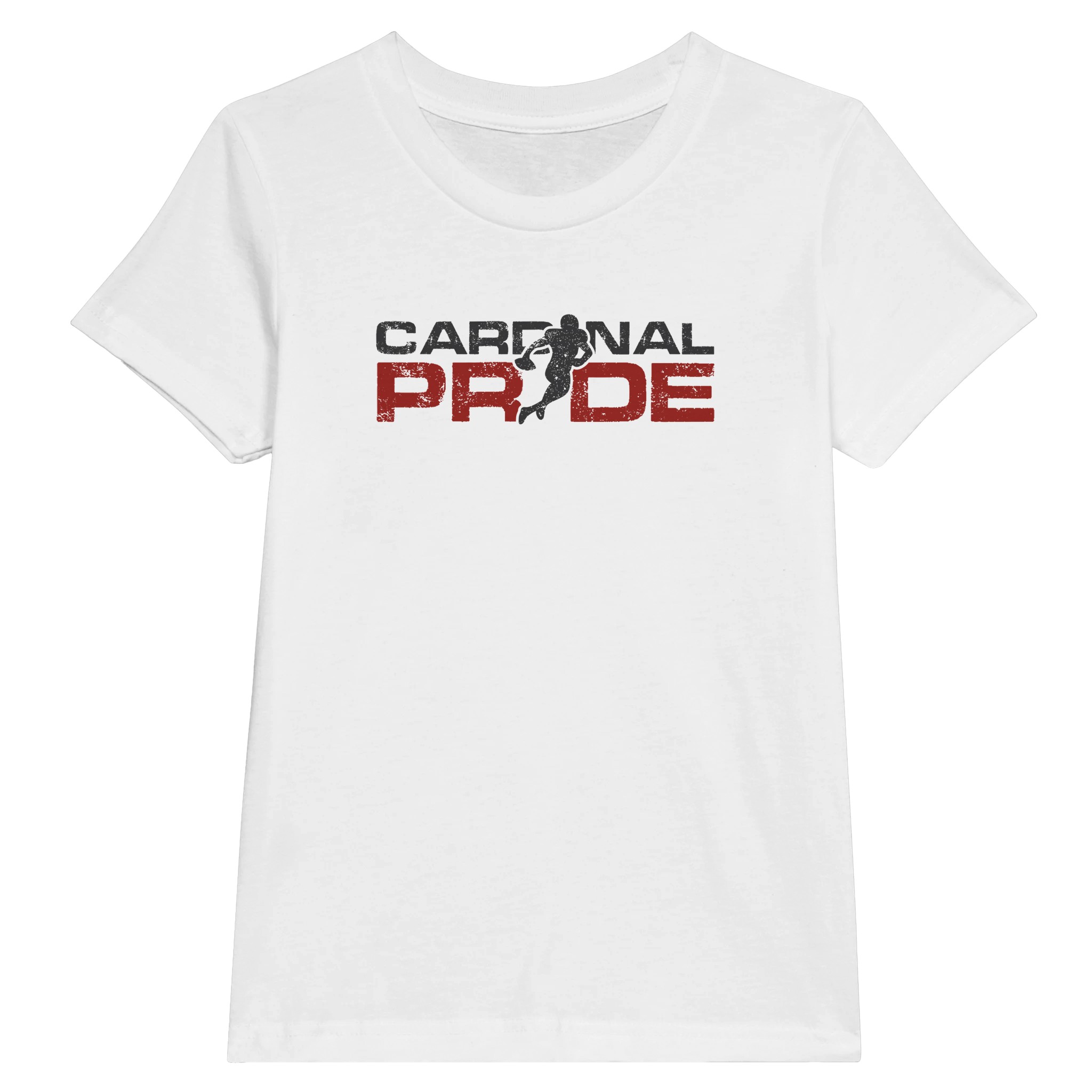 This t-shirt features a bold, dynamic graphic that captures the energy and passion of Cardinal athletics. What makes this design truly special is the silhouette of a football player in full motion, strategically integrated between the letters of “PRIDE” – creating a sense of action and determination that embodies the Cardinal athletic spirit. The player’s dynamic pose, caught mid-stride, represents the drive and commitment that defines Cardinal athletes and their supporters.
