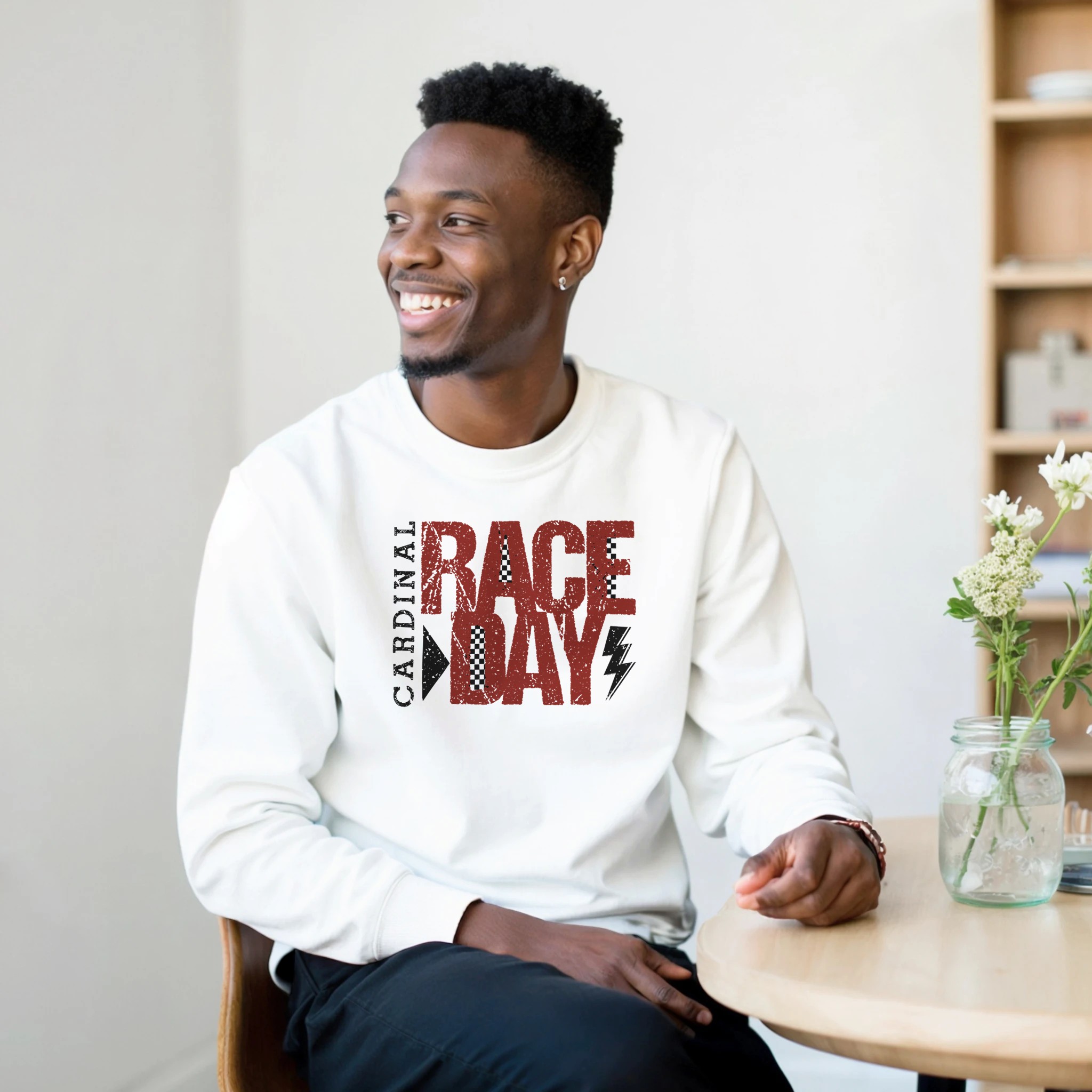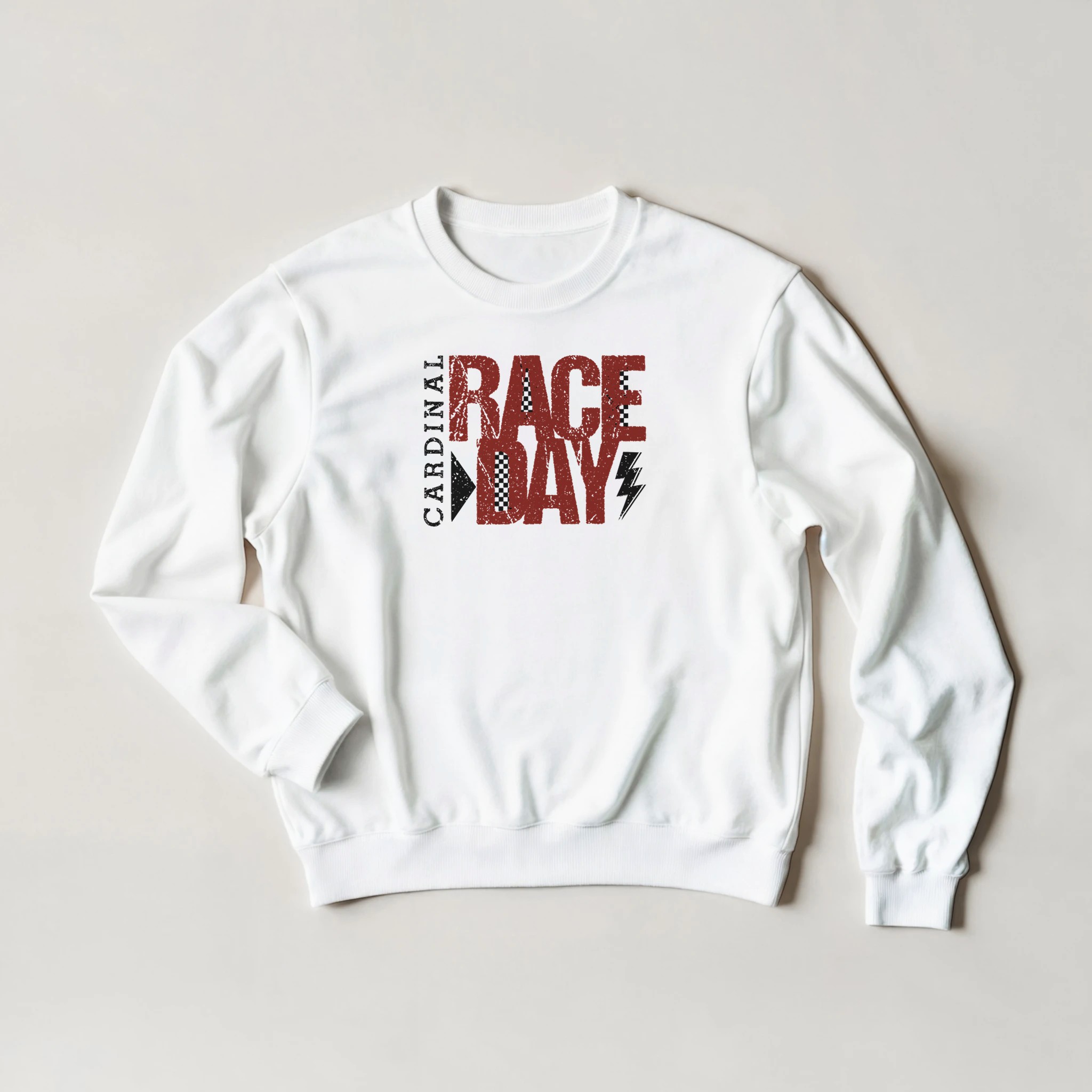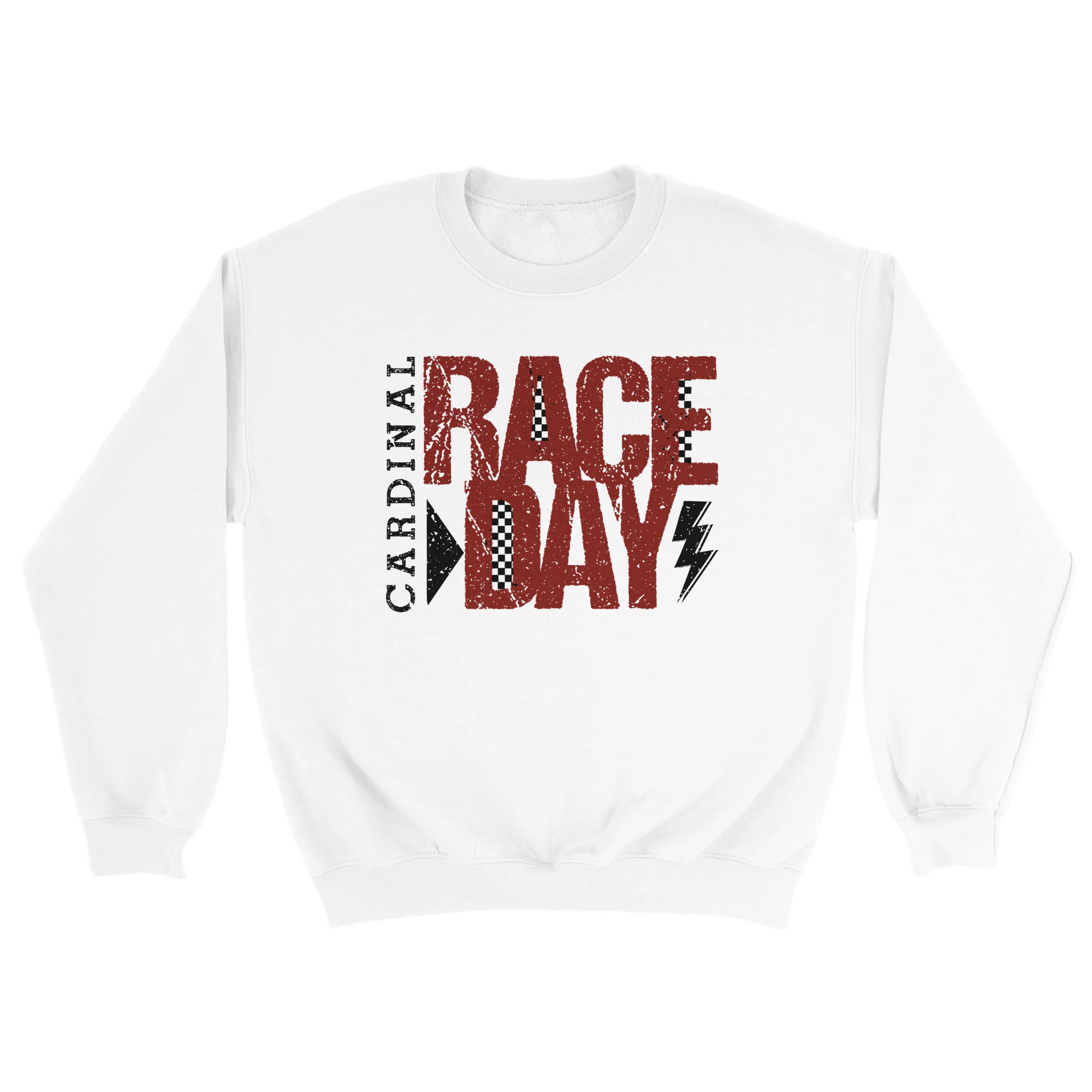 Get ready for the fast lane with our Cardinal Race Day graphic. Featuring a bold, distressed “Race Day” block font and classic checkered flag accents, this design captures the adrenaline of the track. Whether you’re at the stadium or on the streets, this look brings a high-octane vintage vibe to your wardrobe.