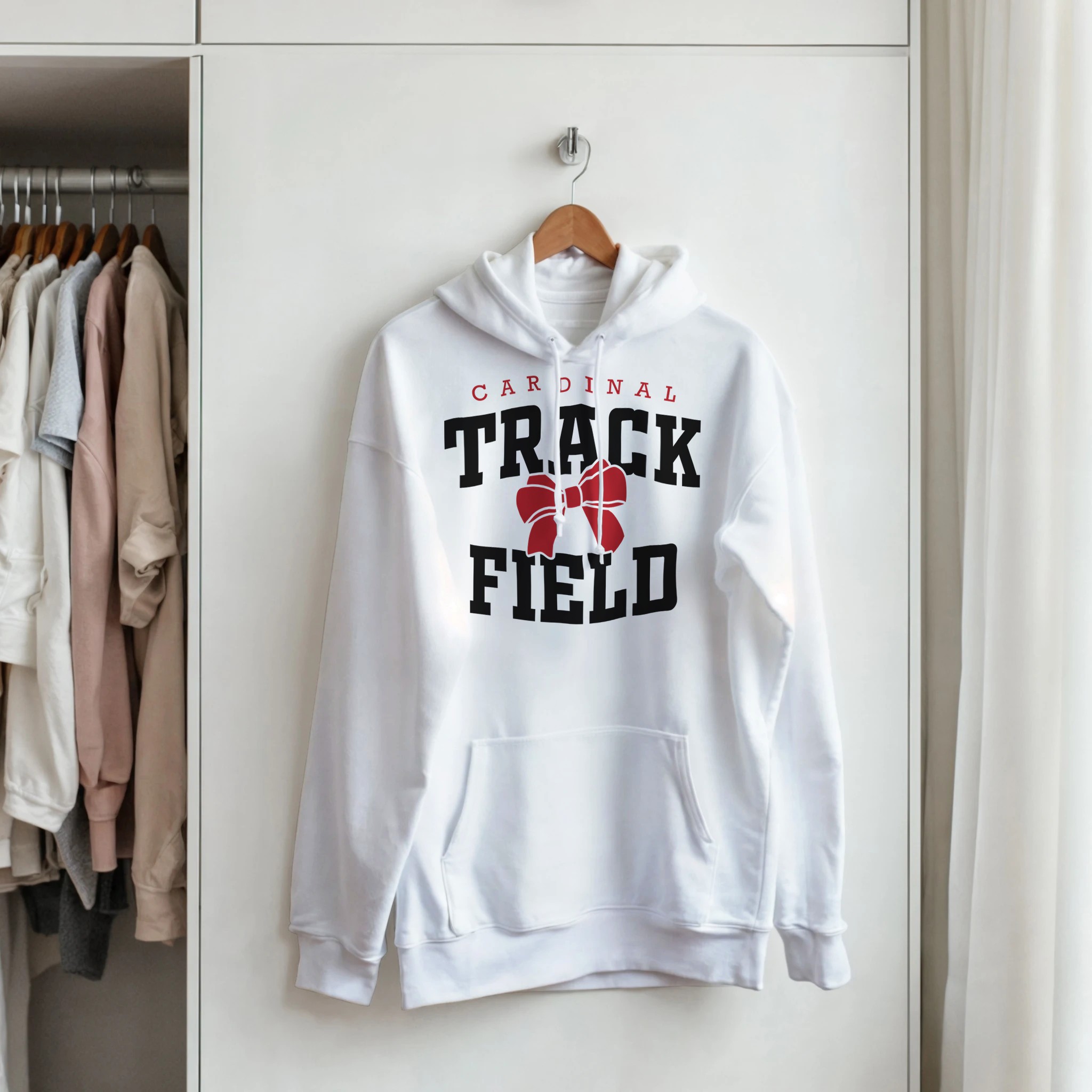 Show your school spirit with a stylish twist! Our Cardinal Track & Field varsity bow graphic is the ultimate essential for student-athletes and fans alike. This clean, centered layout is specifically designed to pop on the front of a hoodie or sweatshirt, making it your go-to outfit for every meet of the season.