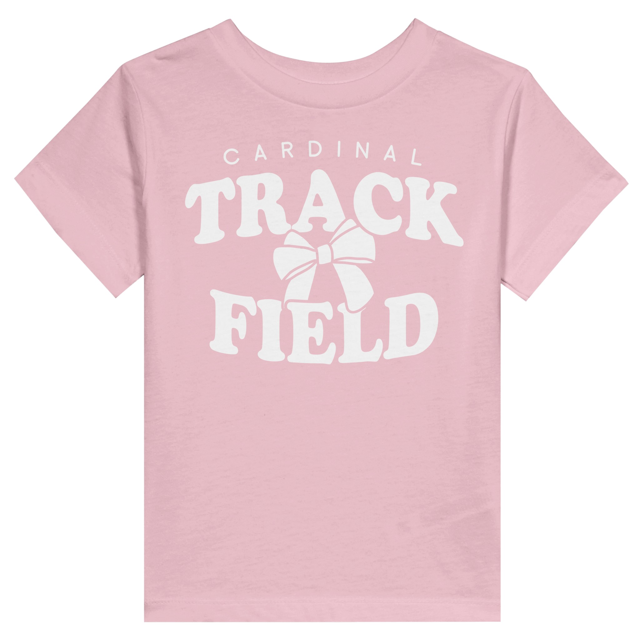 Add a stylish twist to your game-day gear with our Cardinal Track & Field bow design. Featuring bold, arched varsity block lettering and a signature red ribbon bow, this graphic perfectly balances athletic grit with a trendy aesthetic. Whether you’re layering it as a hoodie for a chilly morning meet or wearing it as a classic crewneck sweatshirt, this design is for the fan who does it all with style.