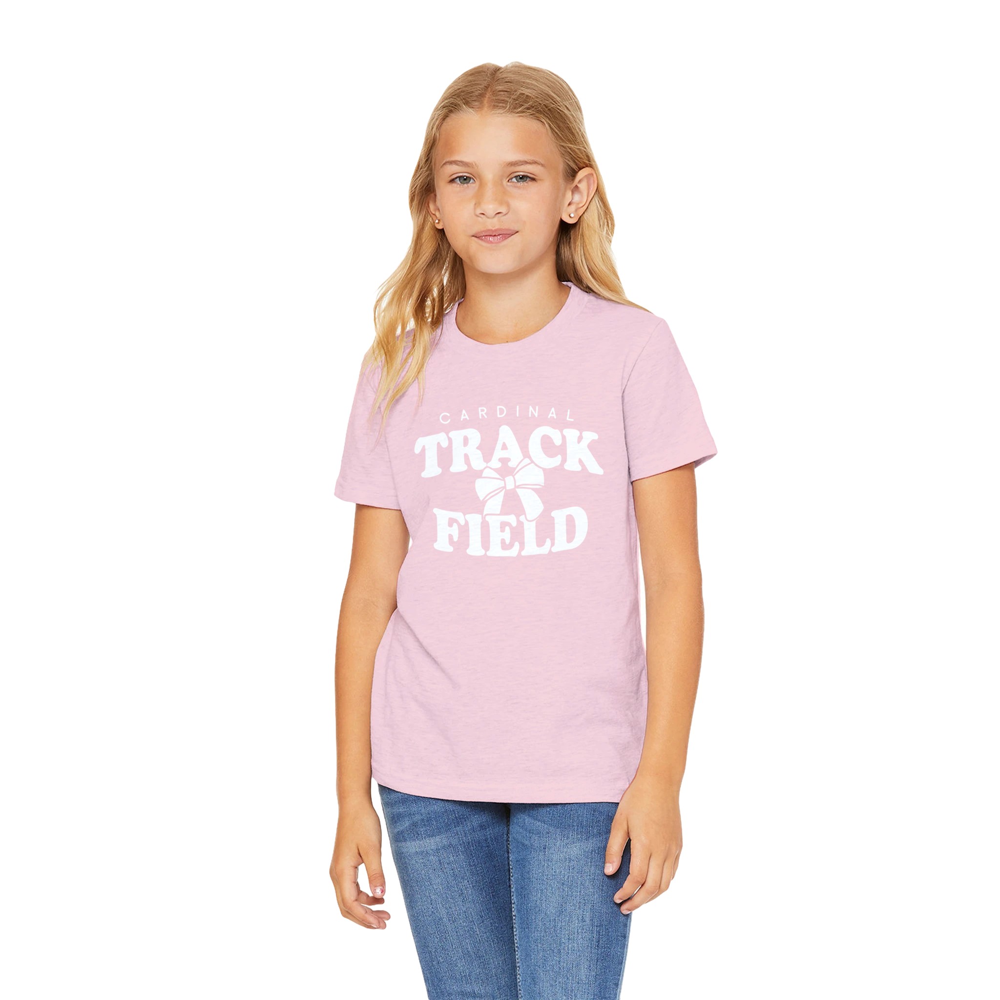 Add a stylish twist to your game-day gear with our Cardinal Track & Field bow design. Featuring bold, arched varsity block lettering and a signature red ribbon bow, this graphic perfectly balances athletic grit with a trendy aesthetic. Whether you’re layering it as a hoodie for a chilly morning meet or wearing it as a classic crewneck sweatshirt, this design is for the fan who does it all with style.