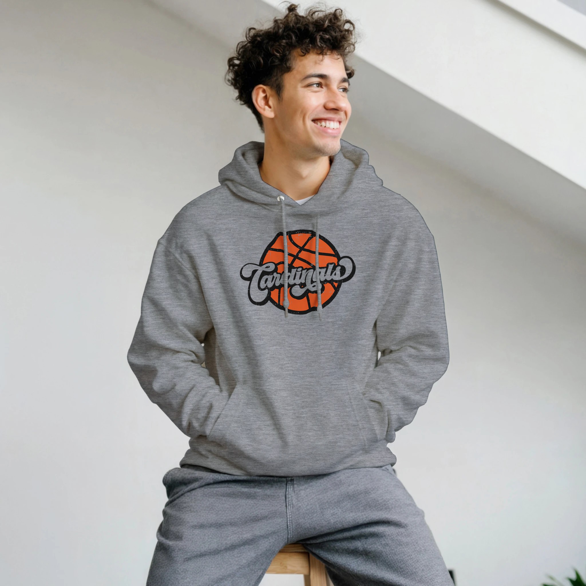 Showcase your team spirit with our nostalgic Cardinals basketball hoodie – where vintage charm meets athletic pride.