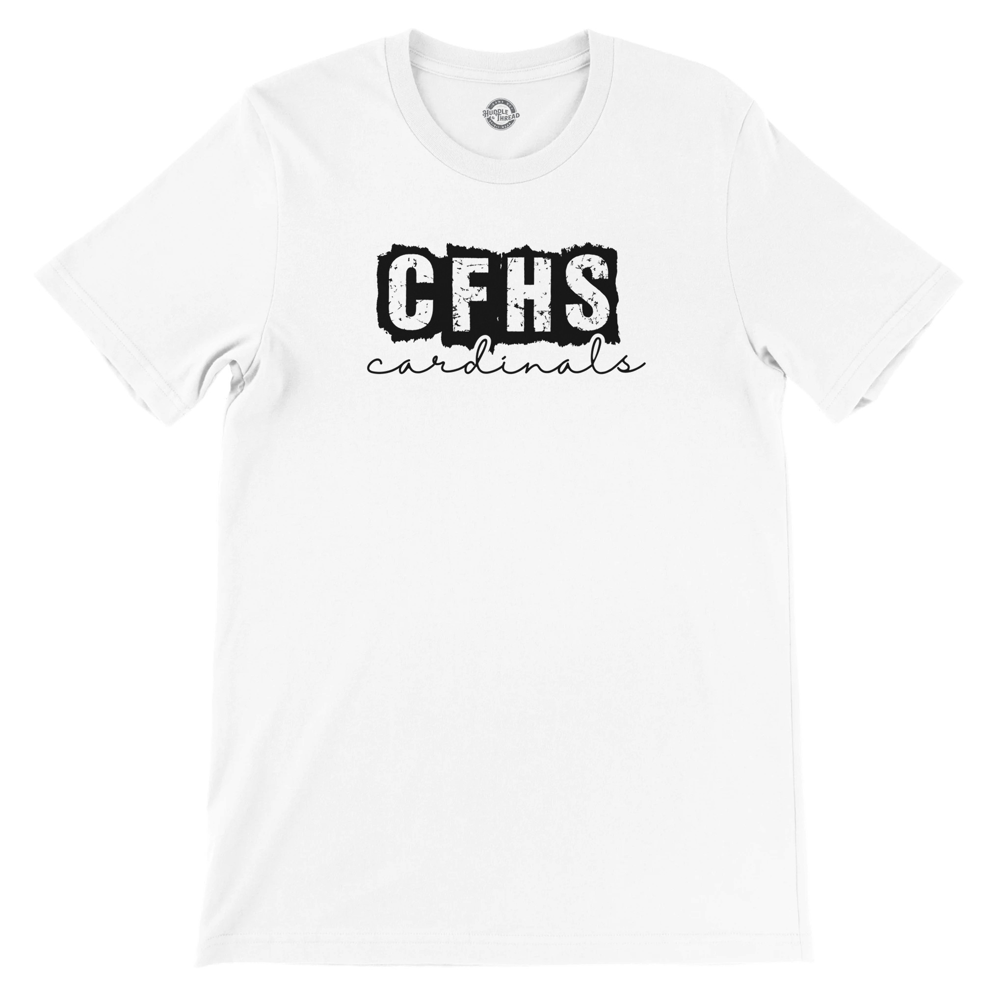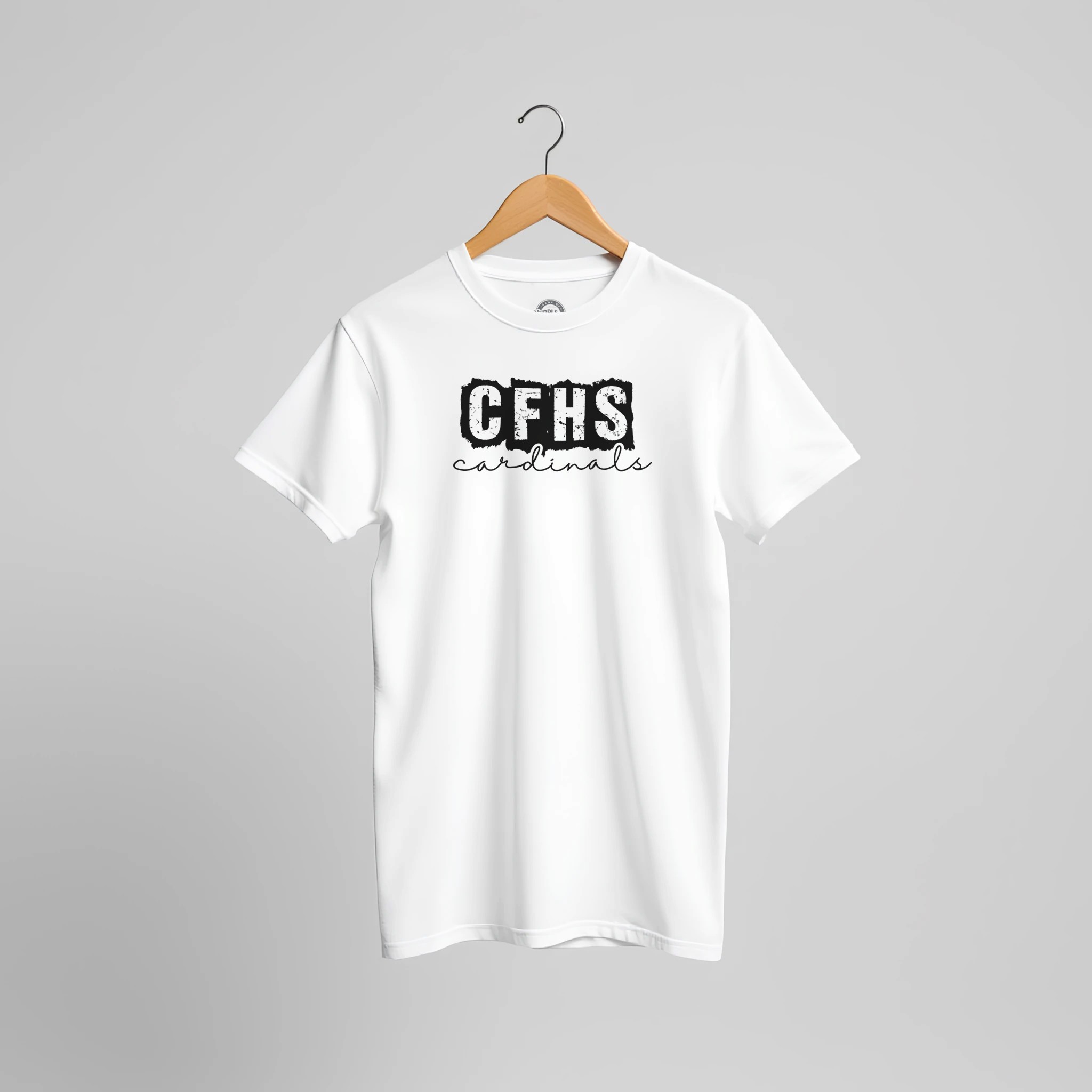This t-shirt features a striking two-part design that celebrates Camden Fairview High School spirit in style. The contrast between the rugged, distressed “CFHS” block and the flowing “cardinals” script creates a perfect visual harmony that represents both the strength and tradition of Camden Fairview High School.