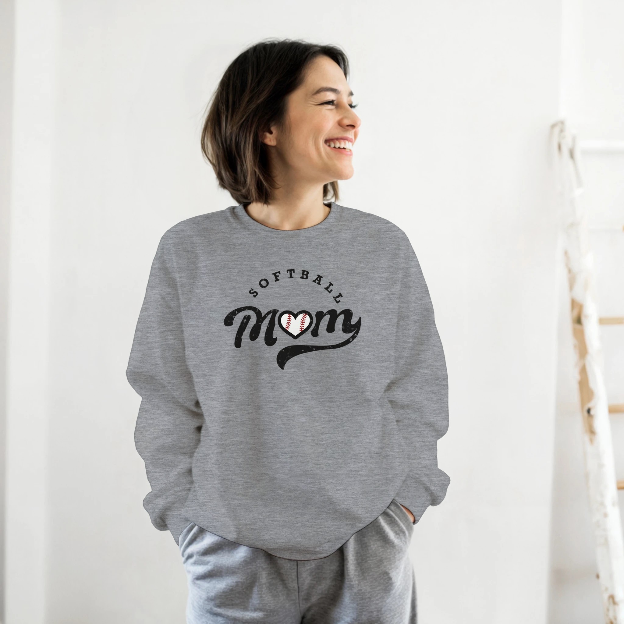 Classic Softball Mom Heart-Stitch Sweatshirt