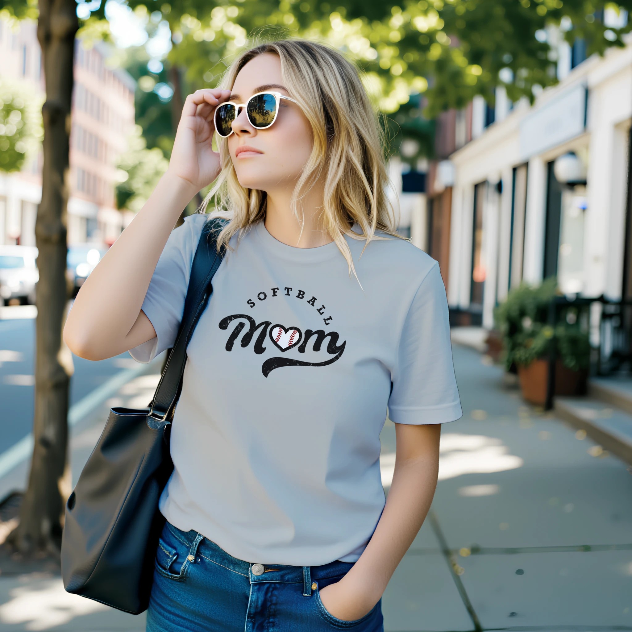 Step into the ballpark with a shirt that’s as stylish as it is spirited. This graphic shirt design captures the essence of “Softball Mom” life with a vintage-style “Mom” script and a detailed heart graphic with softball stitching. Comfortable and classic, it’s a home-run choice for long tournament weekends, team dinners, or everyday wear.