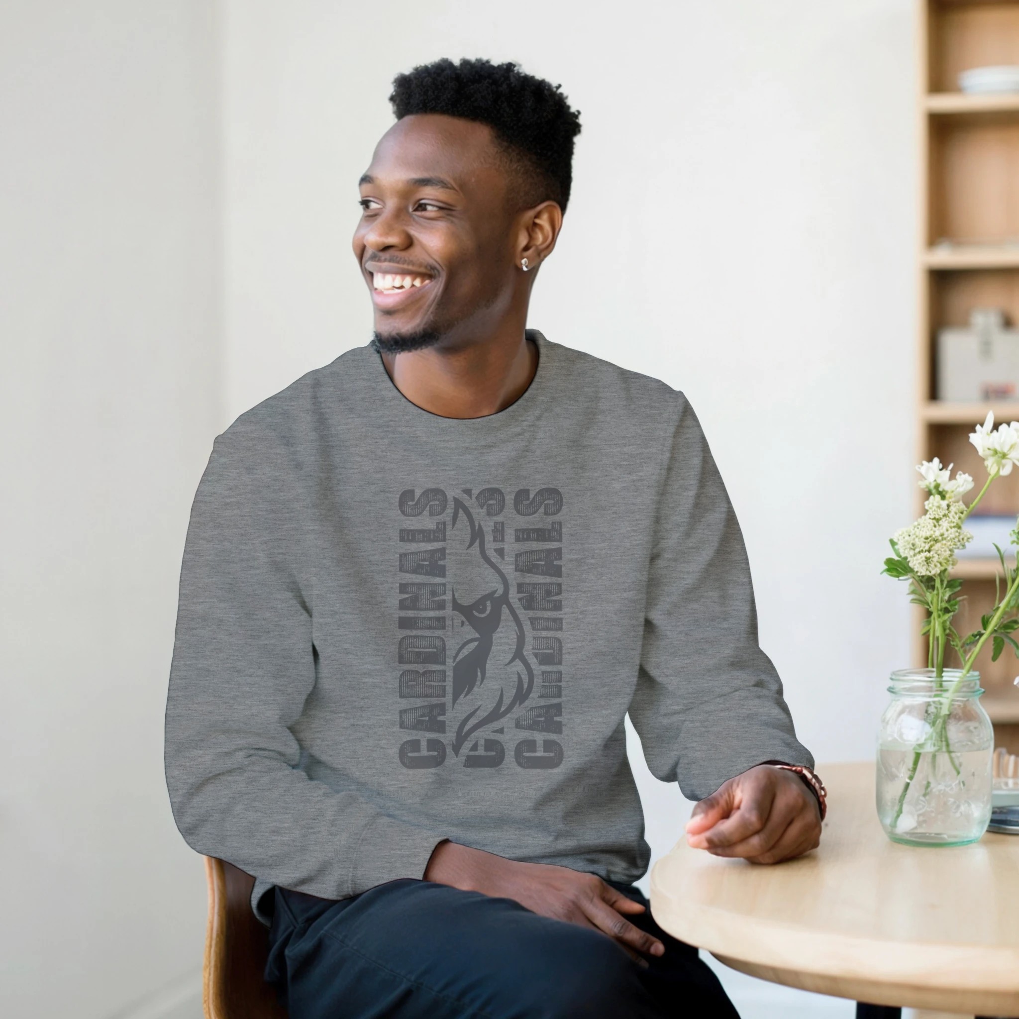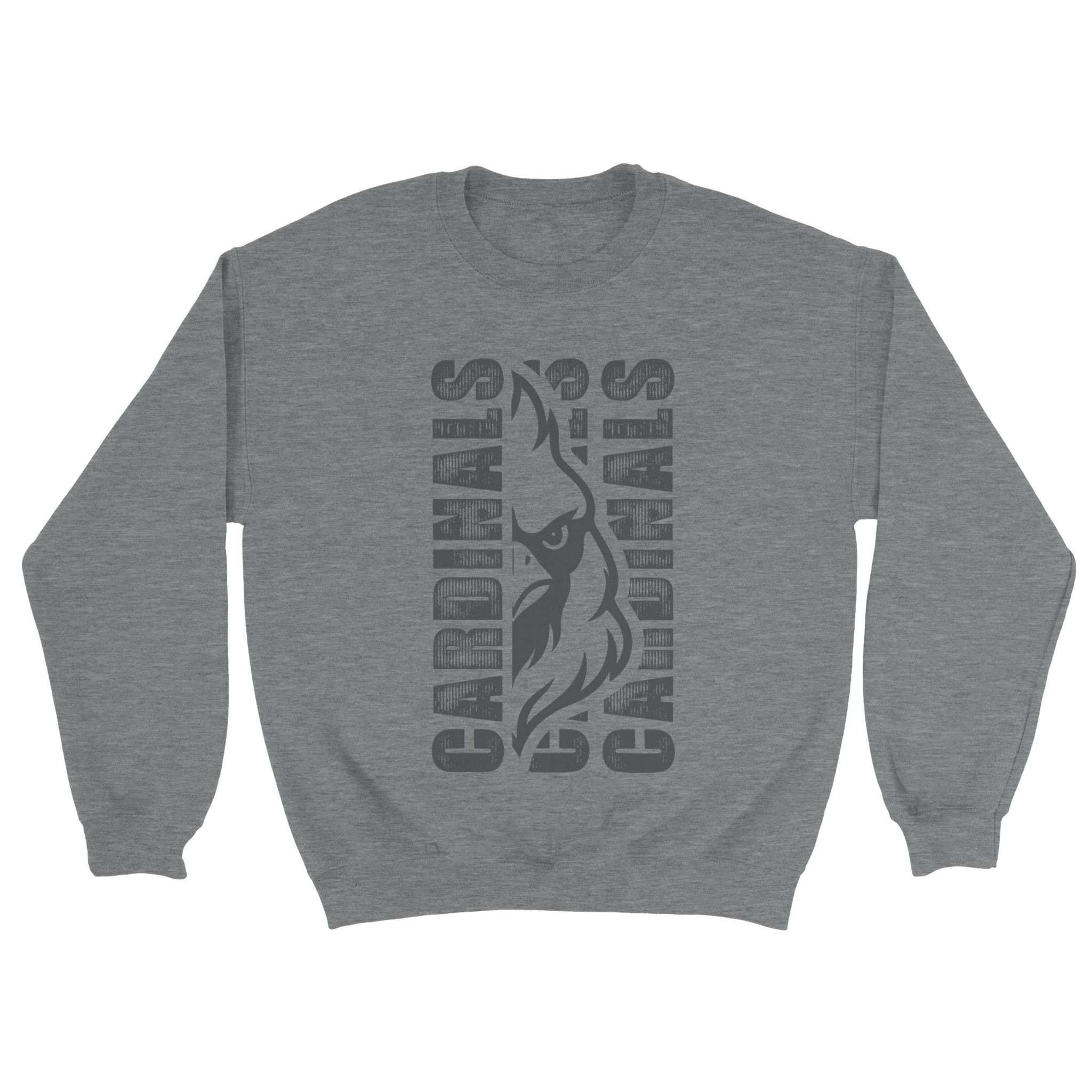 Show your Cardinals spirit with our bold, classic team design! The centerpiece showcases a fierce cardinal mascot head with powerful detailing, flanked by “CARDINALS” text on both sides in a vintage-inspired, distressed font that gives this shirt an authentic, time-honored feel.This is the perfect shirt to stand out in the crowd on game day or show your team loyalty around town. The distressed lettering adds character and a touch of tradition, honoring the legacy of Cardinals pride.