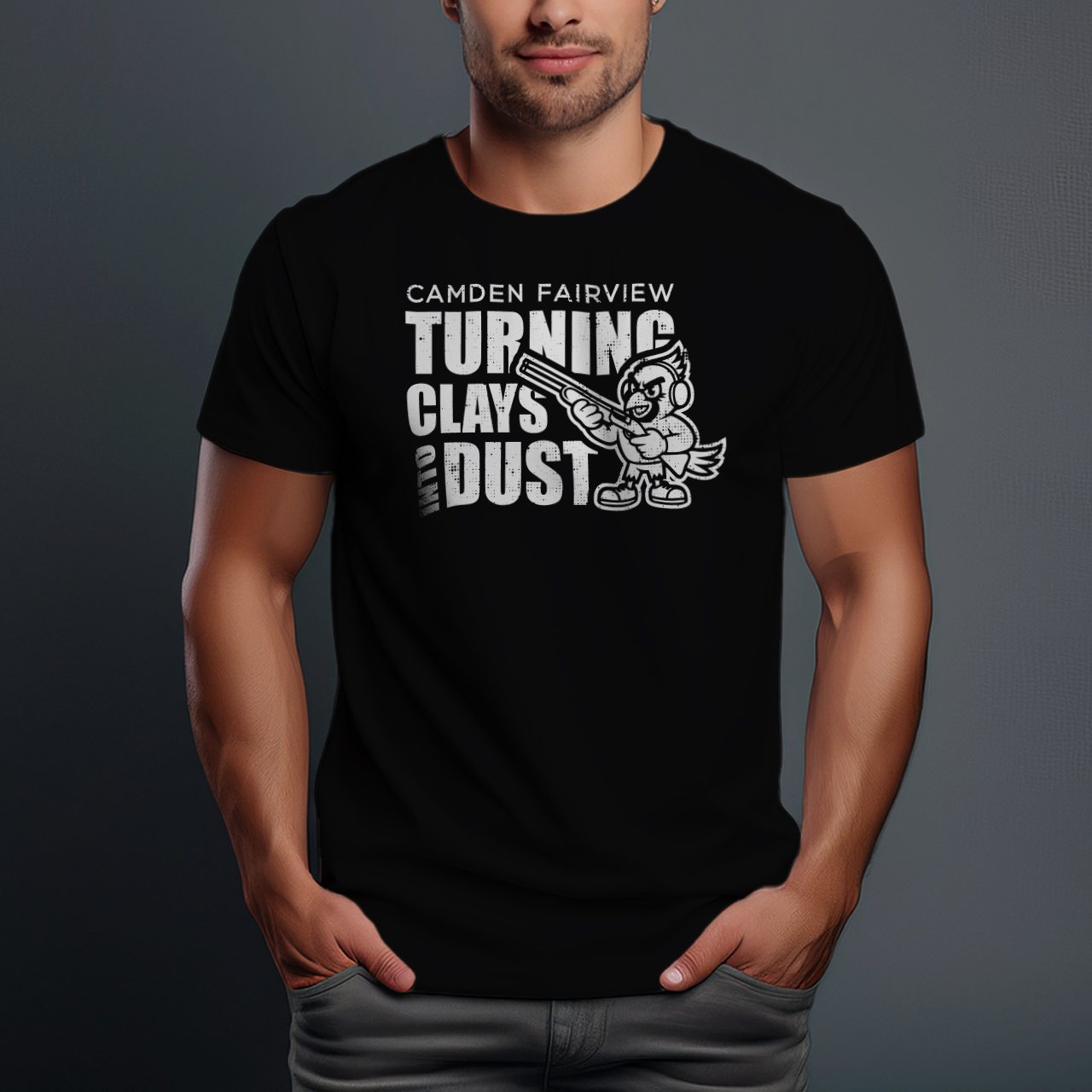 Take your team pride to the range with a design that’s as bold as a perfect score. Featuring a custom cardinal mascot ready for action, this “Turning Clays Into Dust” graphic is the ultimate way for athletes and fans to represent the trap team. The rugged, distressed typography paired with the team’s signature colors creates a high-energy look that’s built for the outdoors.