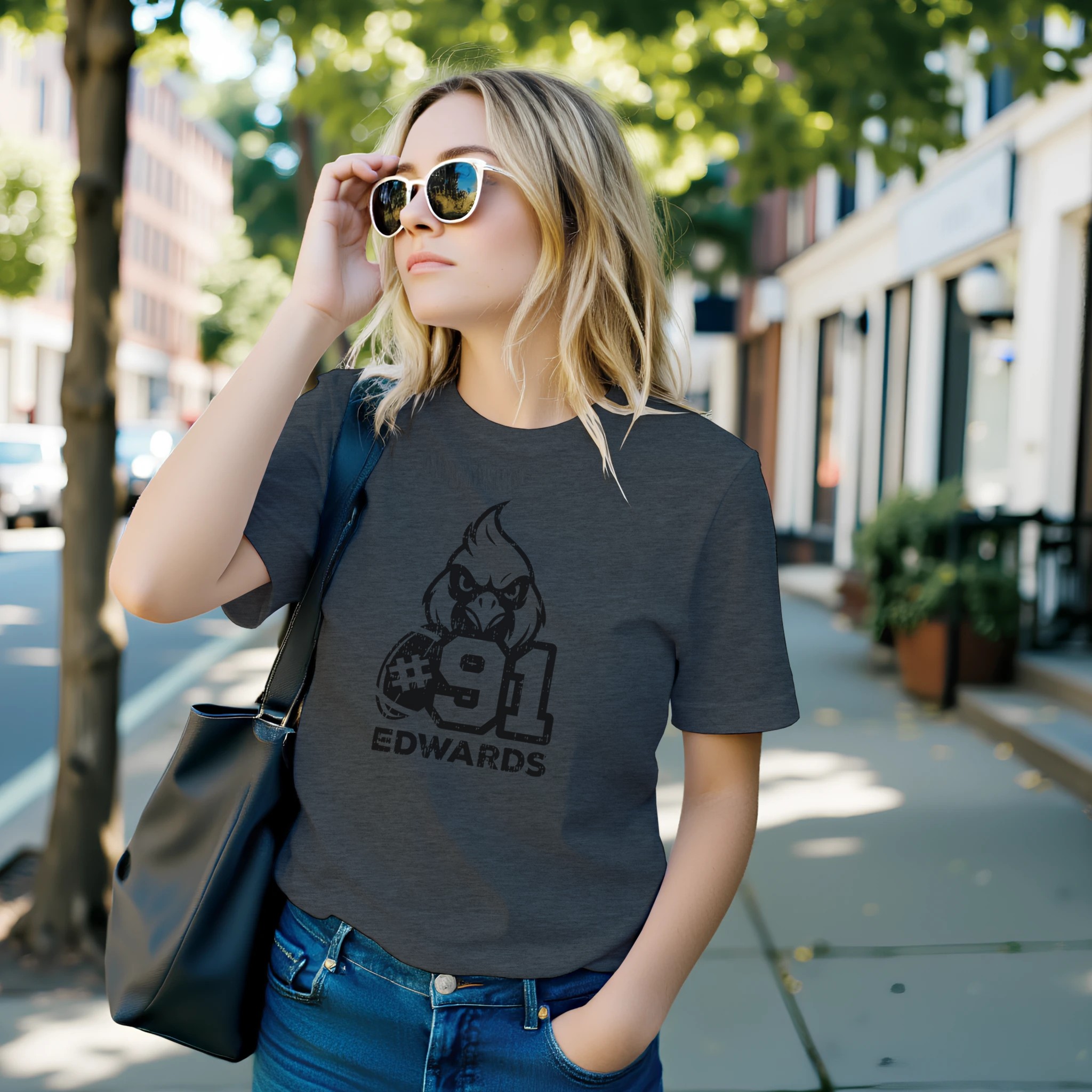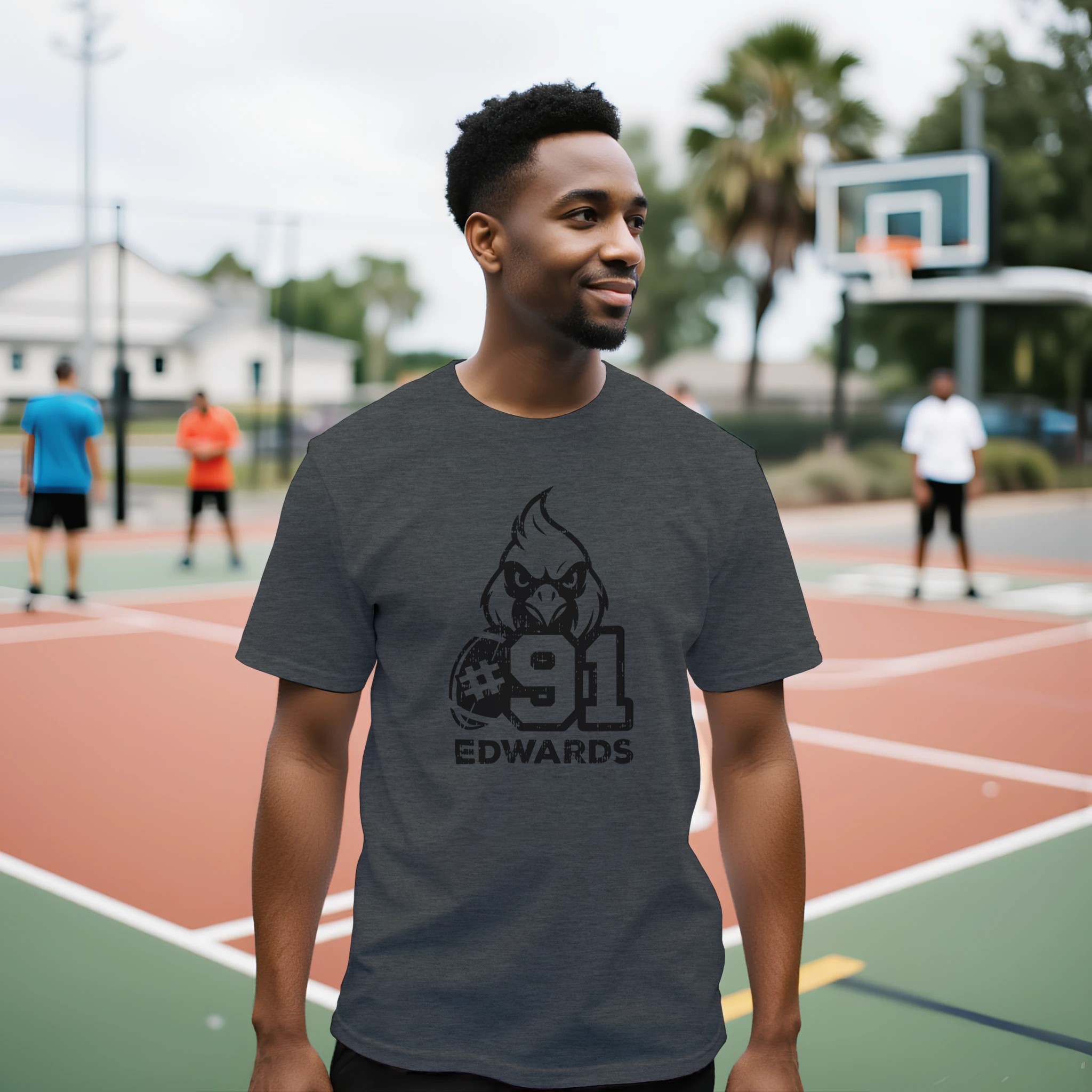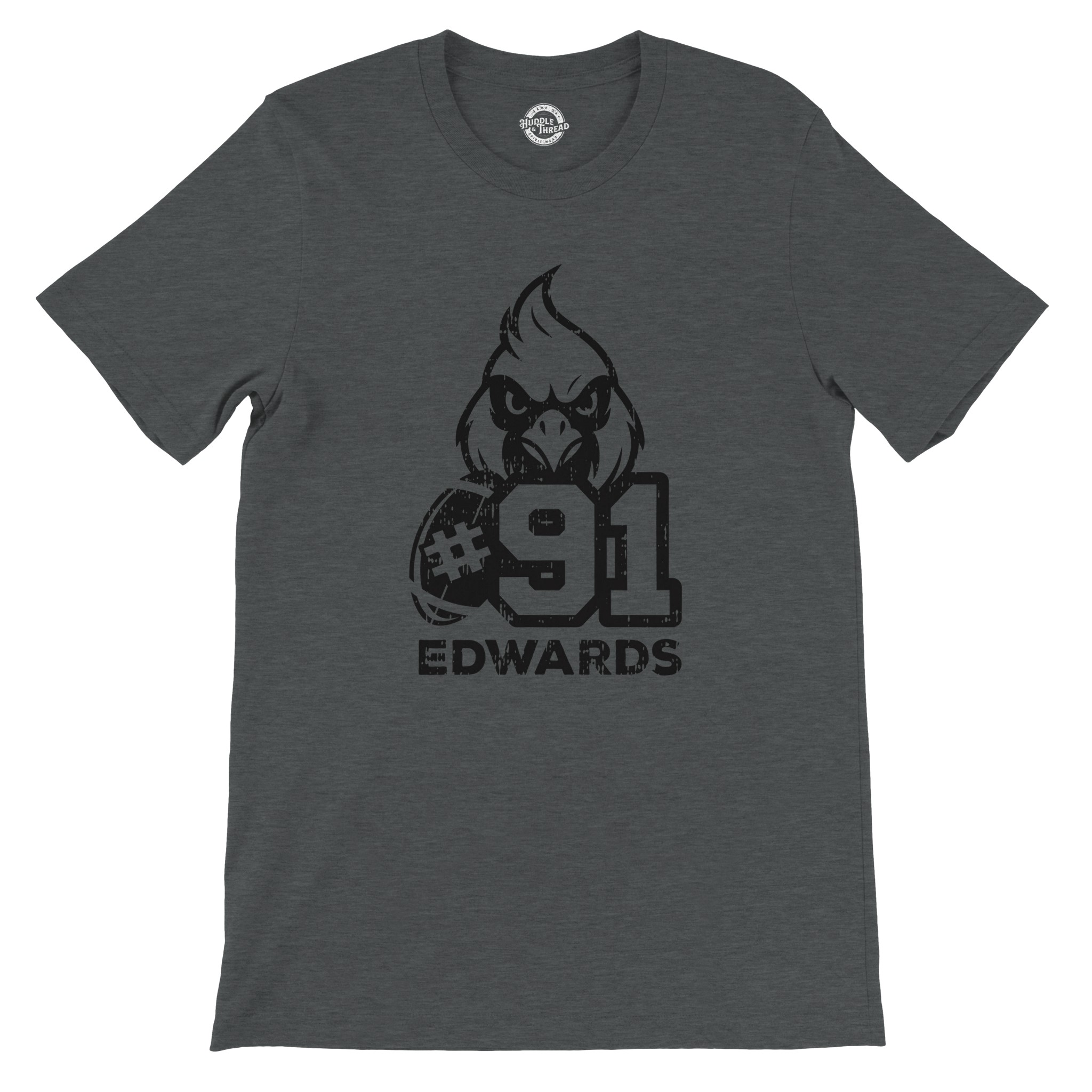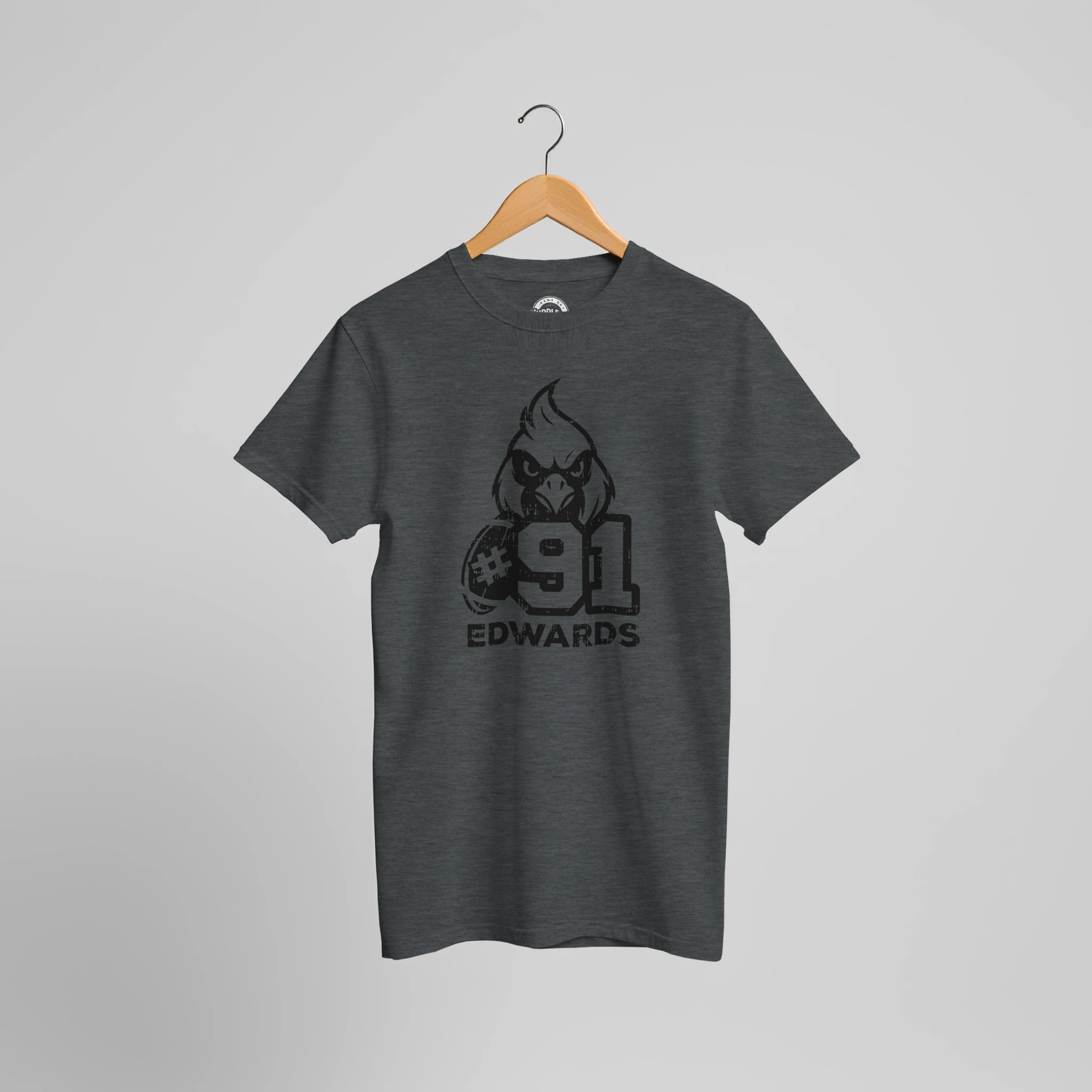 This intentionally distressed t-shirt features a bold design that combines team spirit with personal pride. The centerpiece showcases an aggressive cardinal mascot head with fierce detailing, paired with an authentic football graphic and your favorite player’s jersey number in a powerful, weathered style. Your player’s name is prominently displayed in strong, capital letters, completing this personalized team apparel.