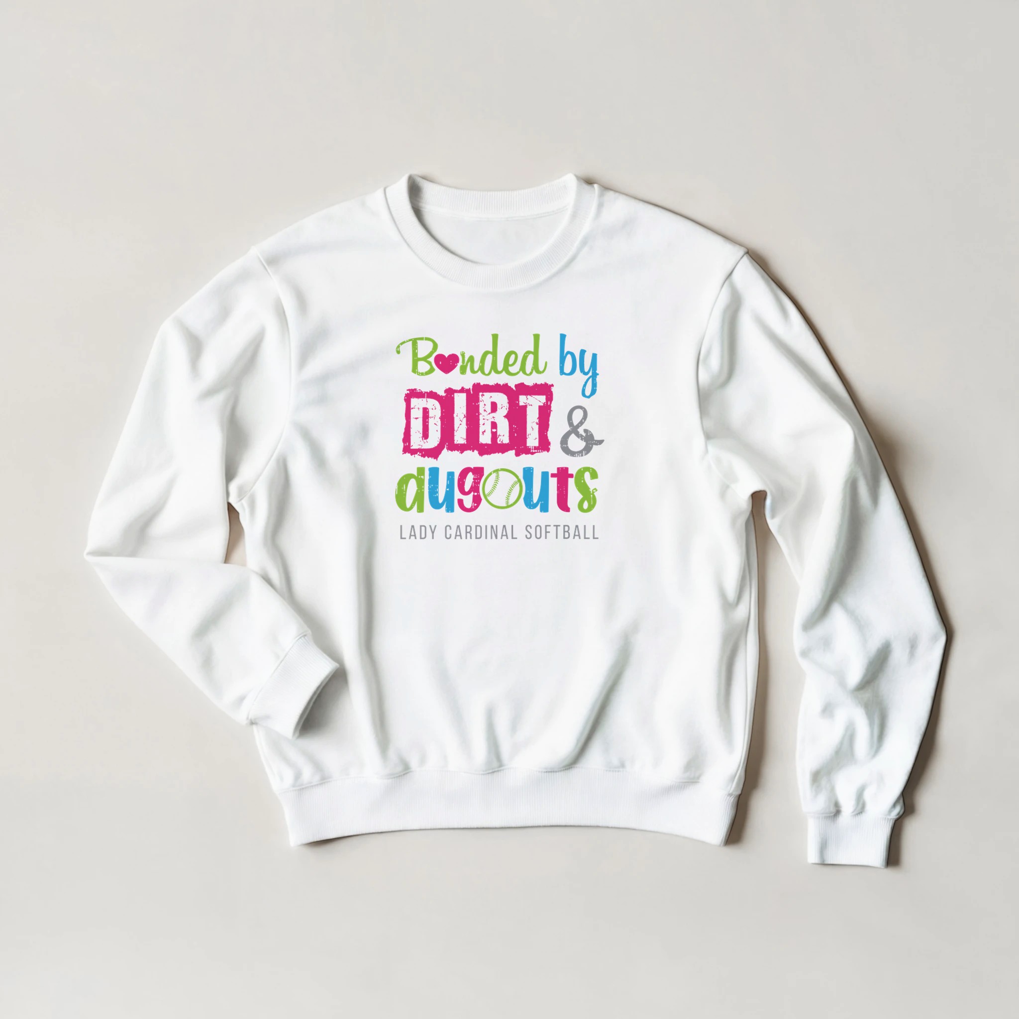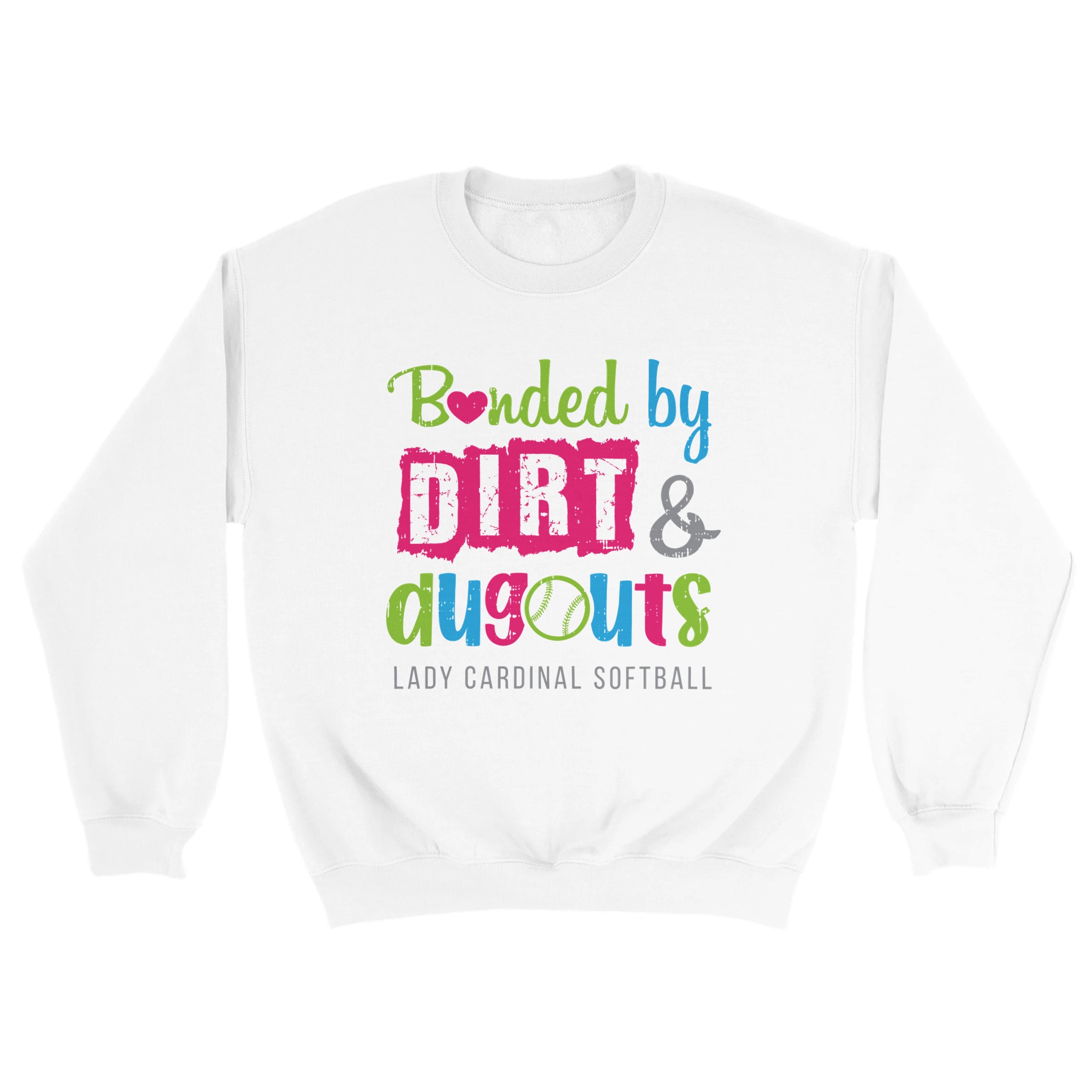 There is a special kind of friendship that only happens on the field. This “Bonded by Dirt & Dugouts” tee celebrates that unique connection with a bright, playful design. Featuring a mix of neon pink, lime green, and electric blue typography, it’s the perfect gear for the Lady Cardinal player who knows that the best memories are made in the dirt.