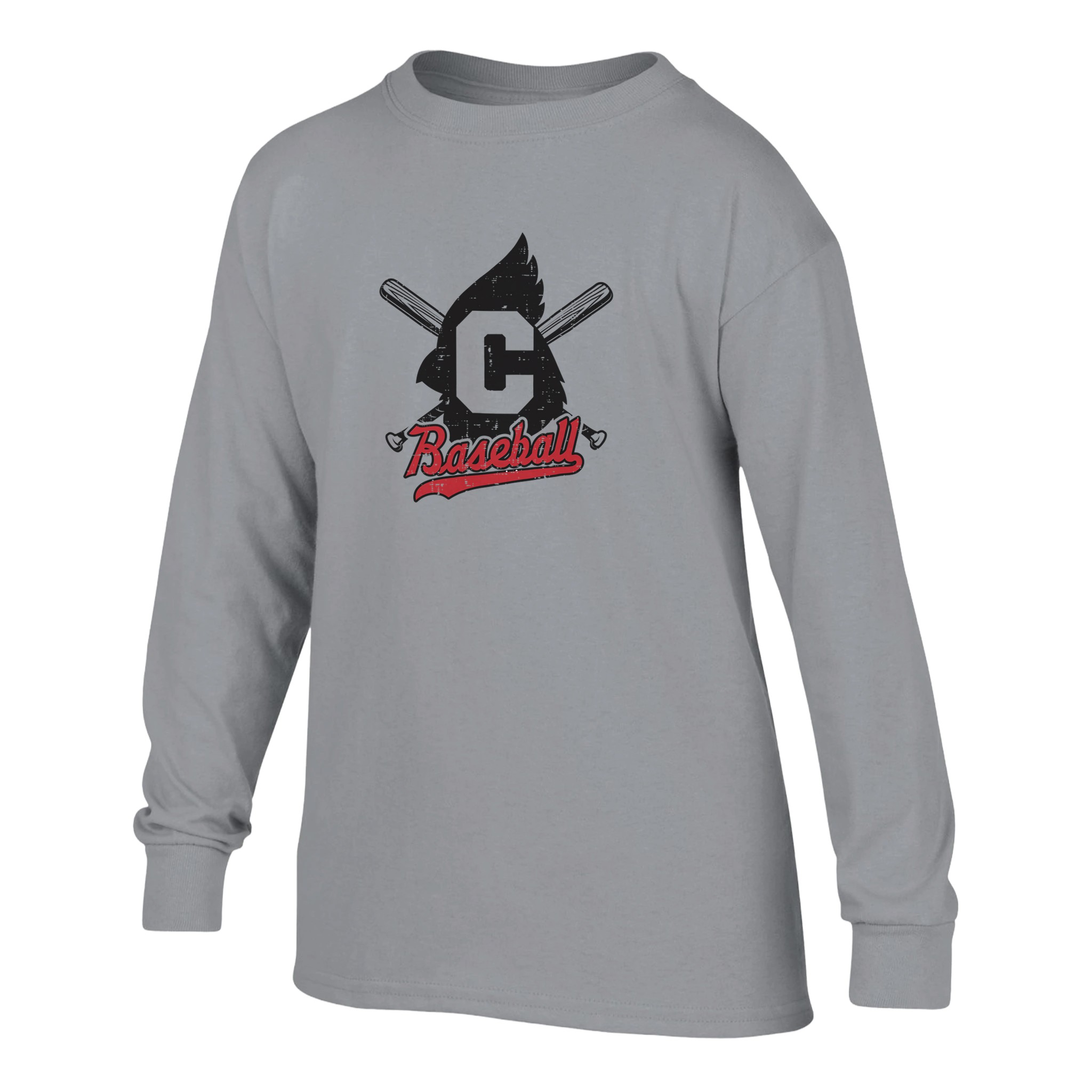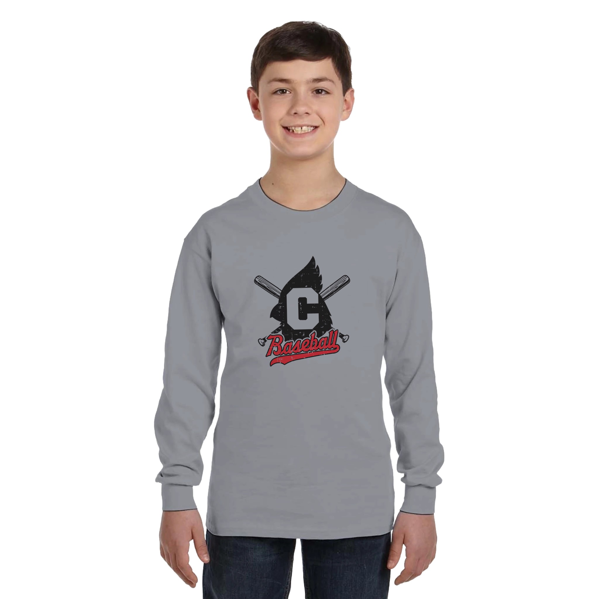 Distressed C Baseball Long-Sleeve Tee – Youth