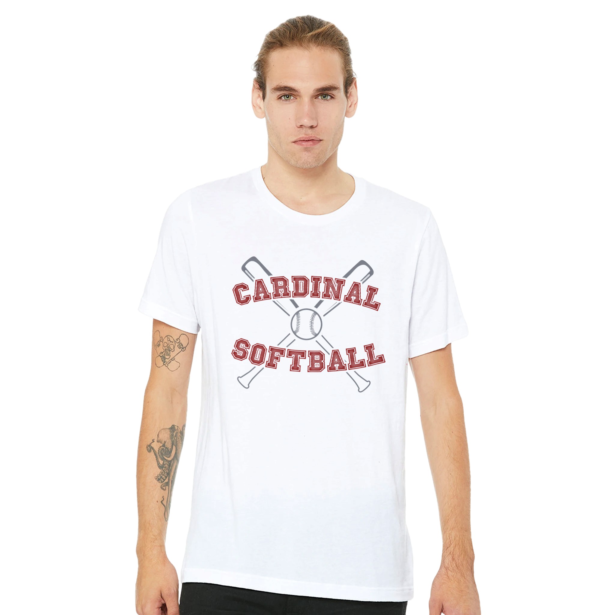Step up to the plate with this Cardinal Softball heritage tee. Featuring a timeless crossed-bats design and a clean athletic aesthetic, this shirt captures the heart of the diamond. The red varsity lettering paired with the silver-outlined bats gives it a professional look that’s perfect for the stands or the dugout.