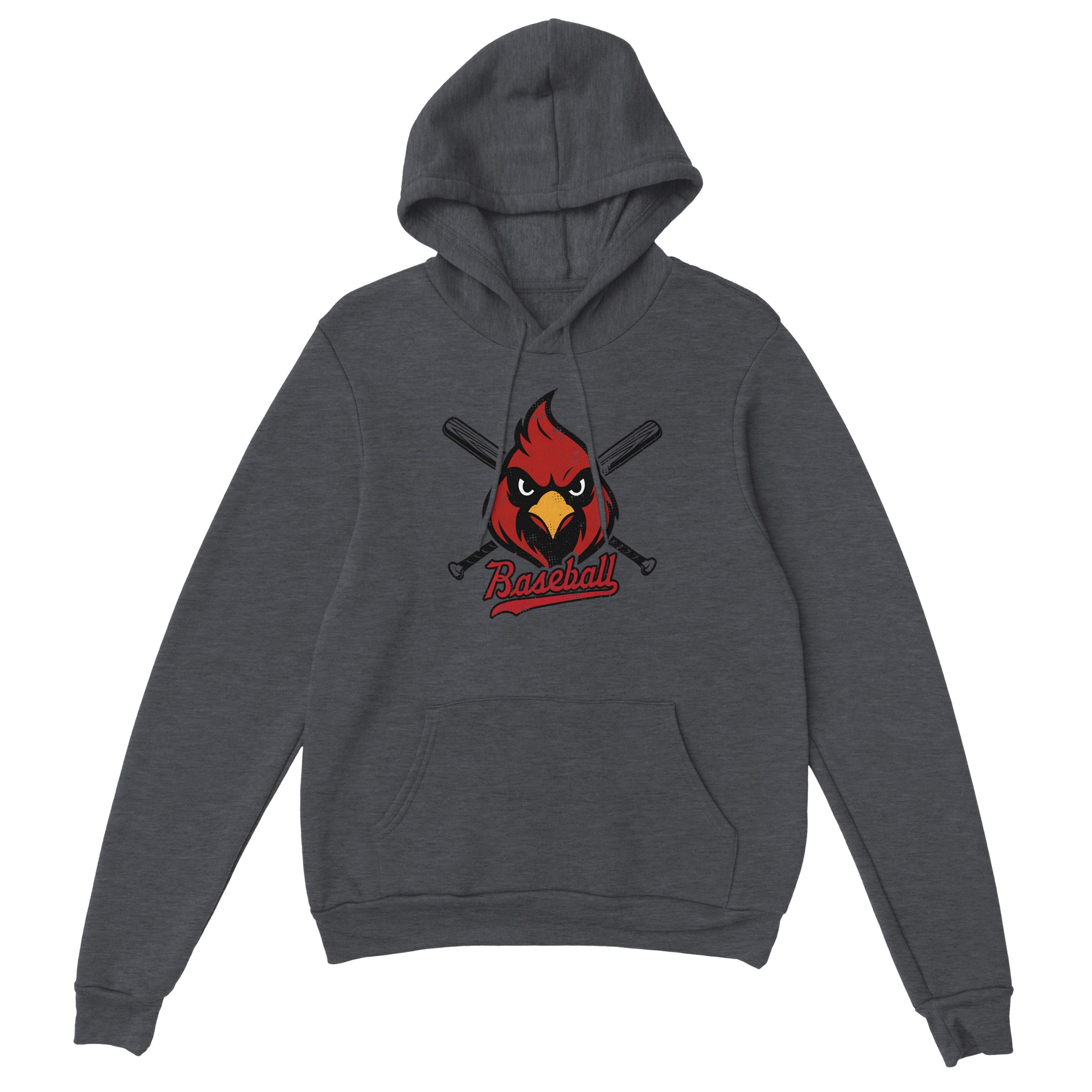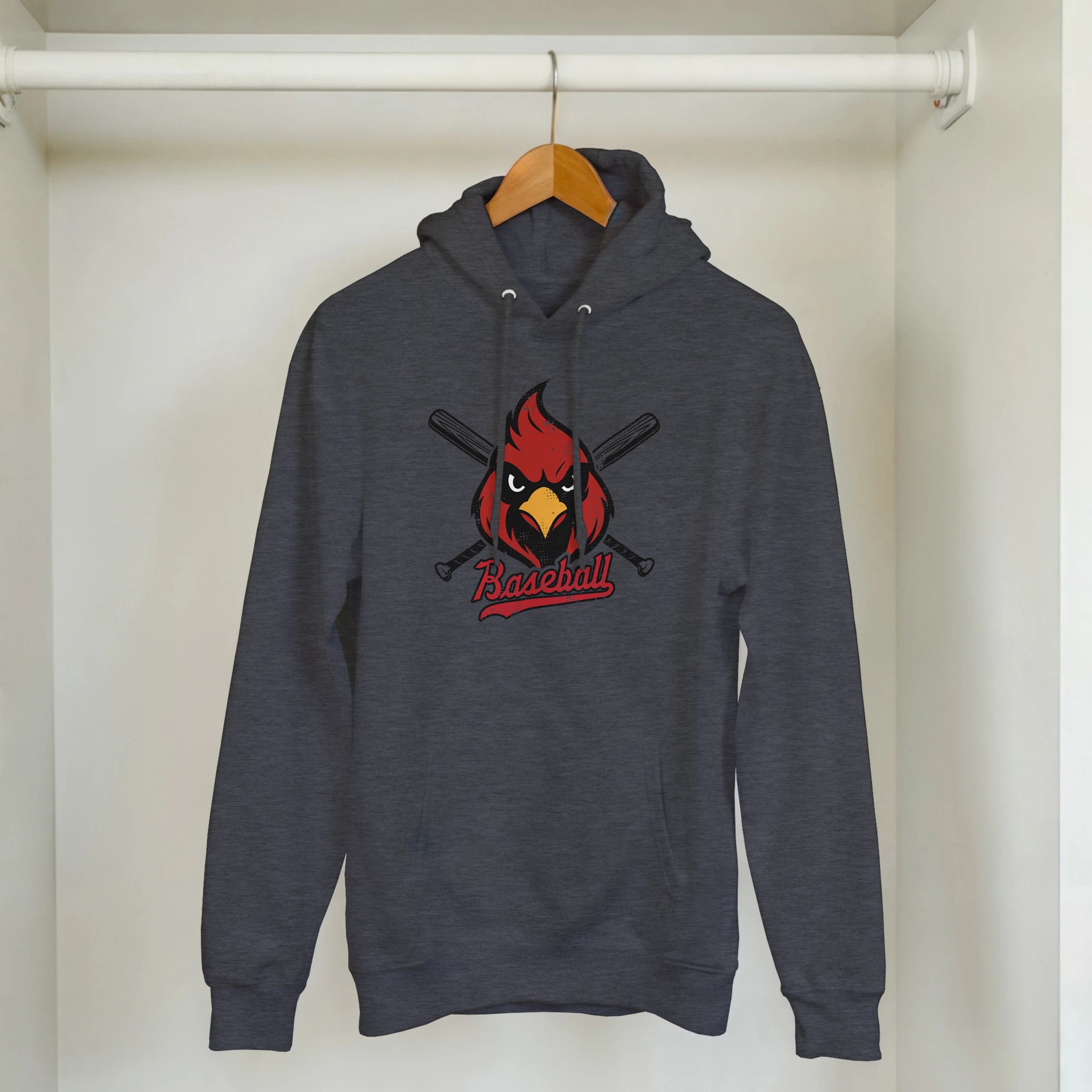 This Cardinal Baseball tee delivers a bold, spirited look that stands out on and off the field. The design features a fierce red cardinal mascot centered between crossed baseball bats, giving it a strong, competitive feel perfect for players, parents, and fans. The script “Baseball” tail logo adds a classic sports touch and finishes the design with a clean, vintage vibe.