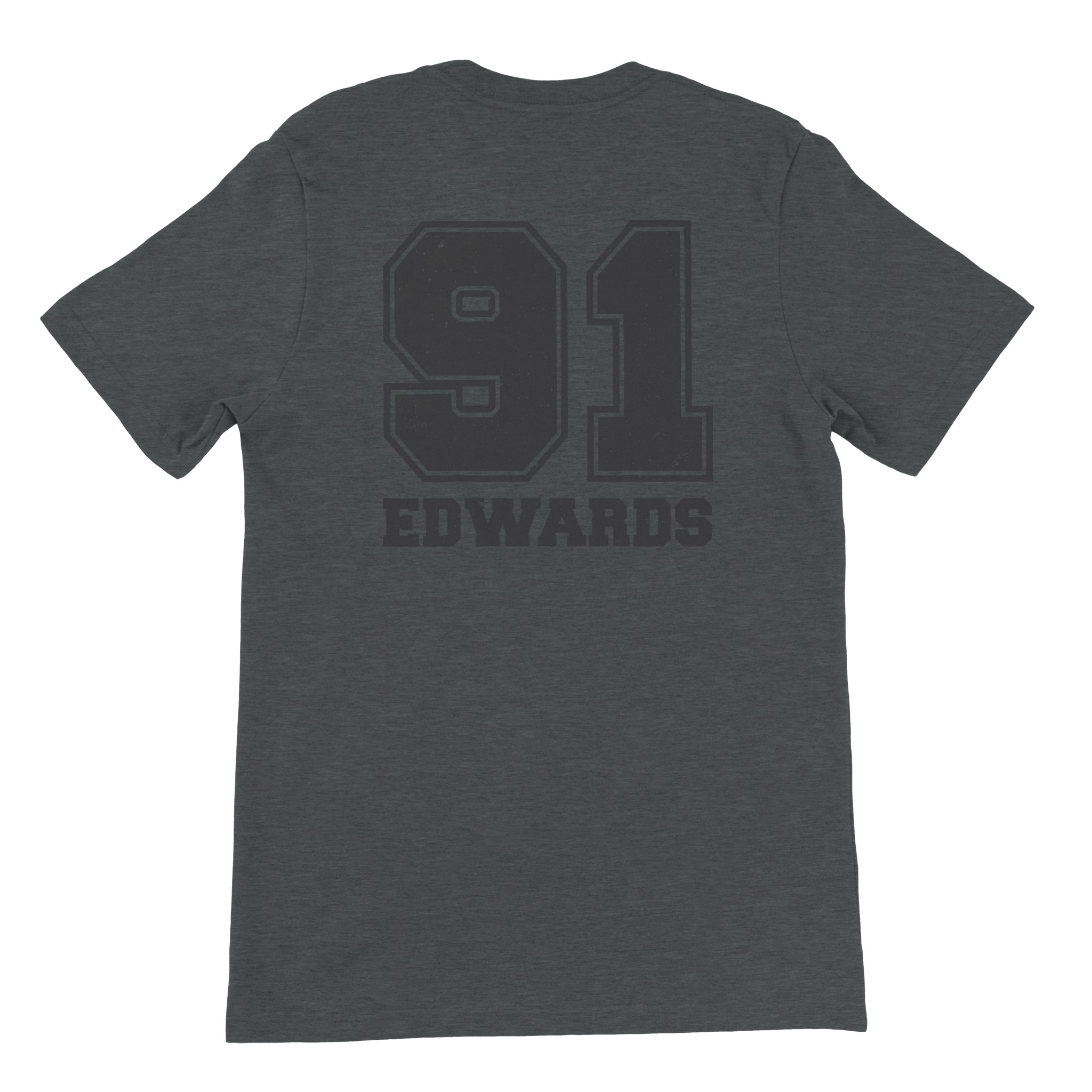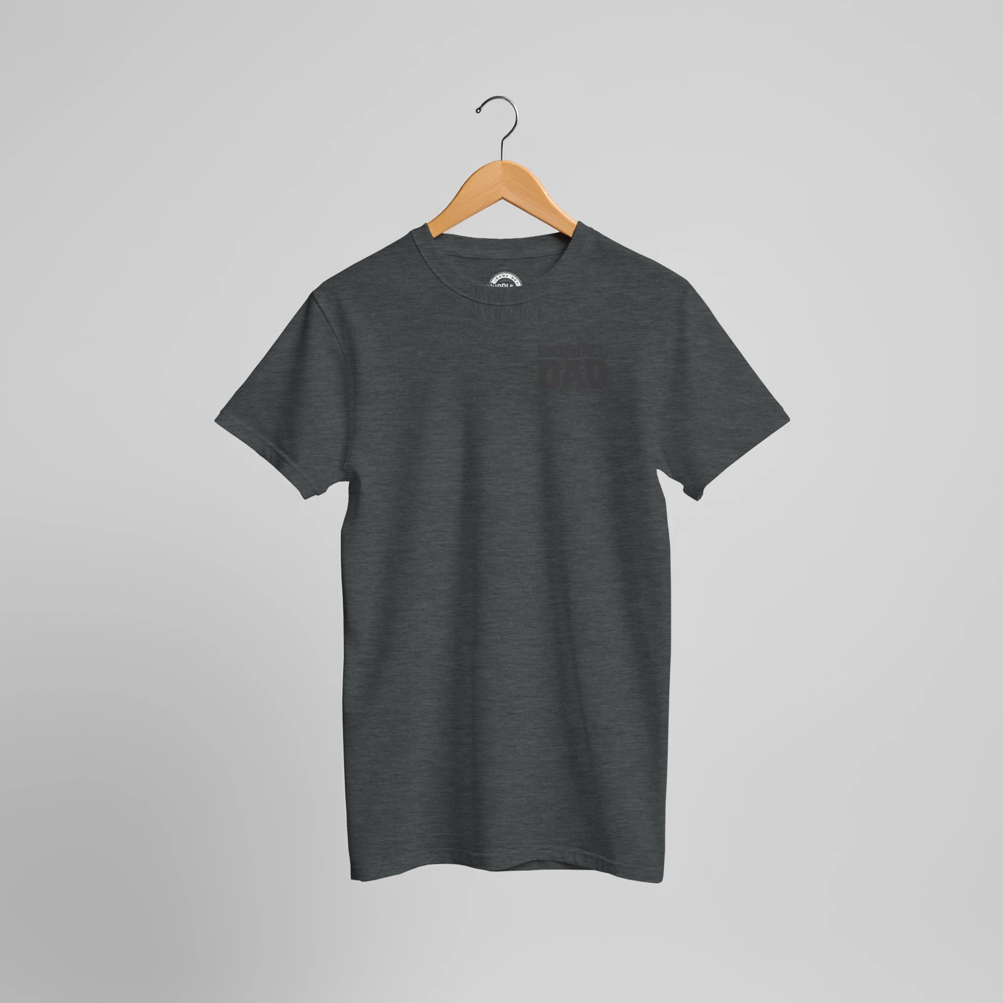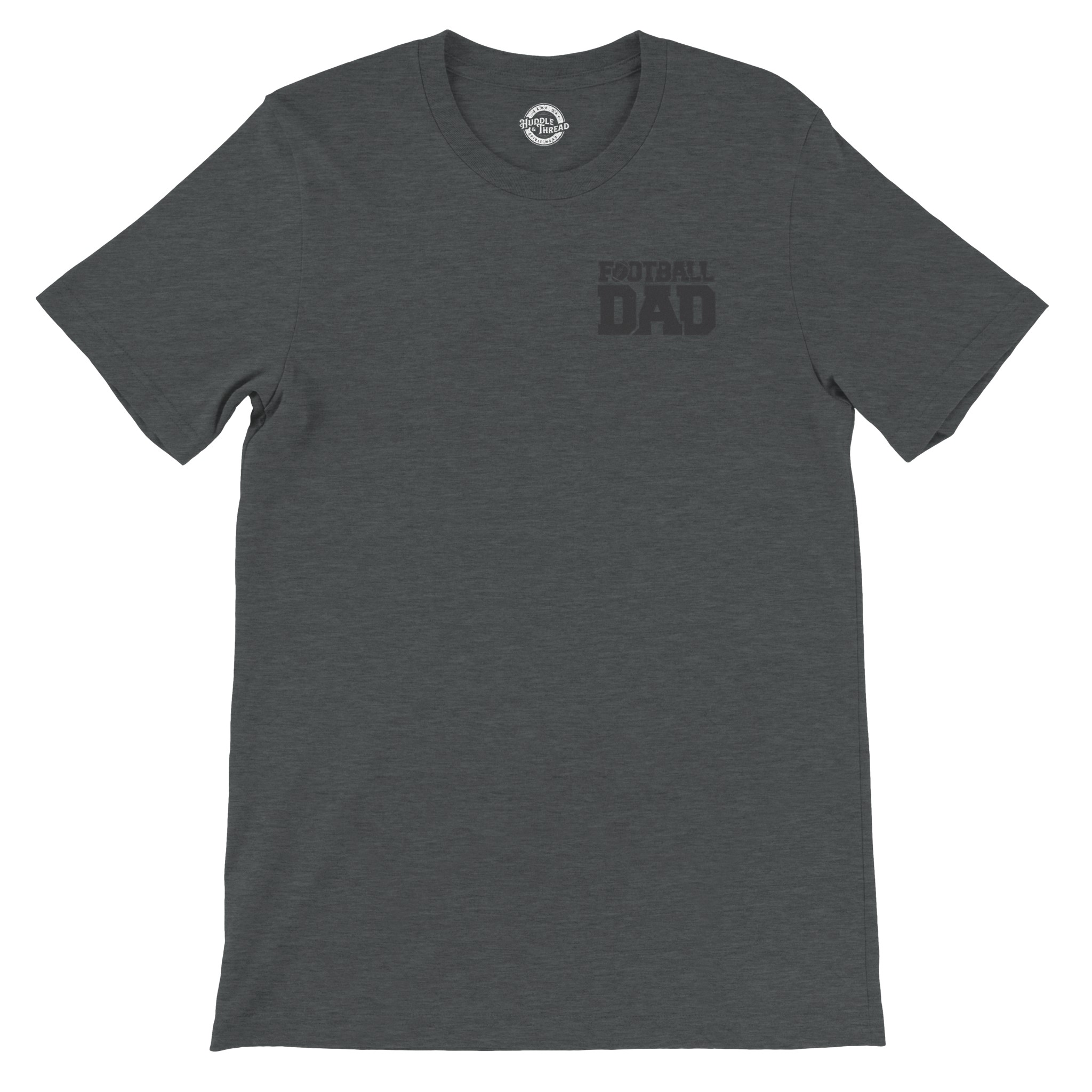 This t-shirt offers the perfect blend of parental pride and sophisticated style for the dedicated football dad. The front features a subtle yet meaningful “FOOTBALL DAD” designation on the left chest – a refined badge of honor that speaks volumes without shouting. Turn around to reveal the jersey-inspired back, where your player’s number is displayed in a bold, outlined dark gray tone. Below the number, your player’s name is proudly displayed in matching athletic typography, creating a personalized tribute that connects you to your player while maintaining a clean, contemporary look.