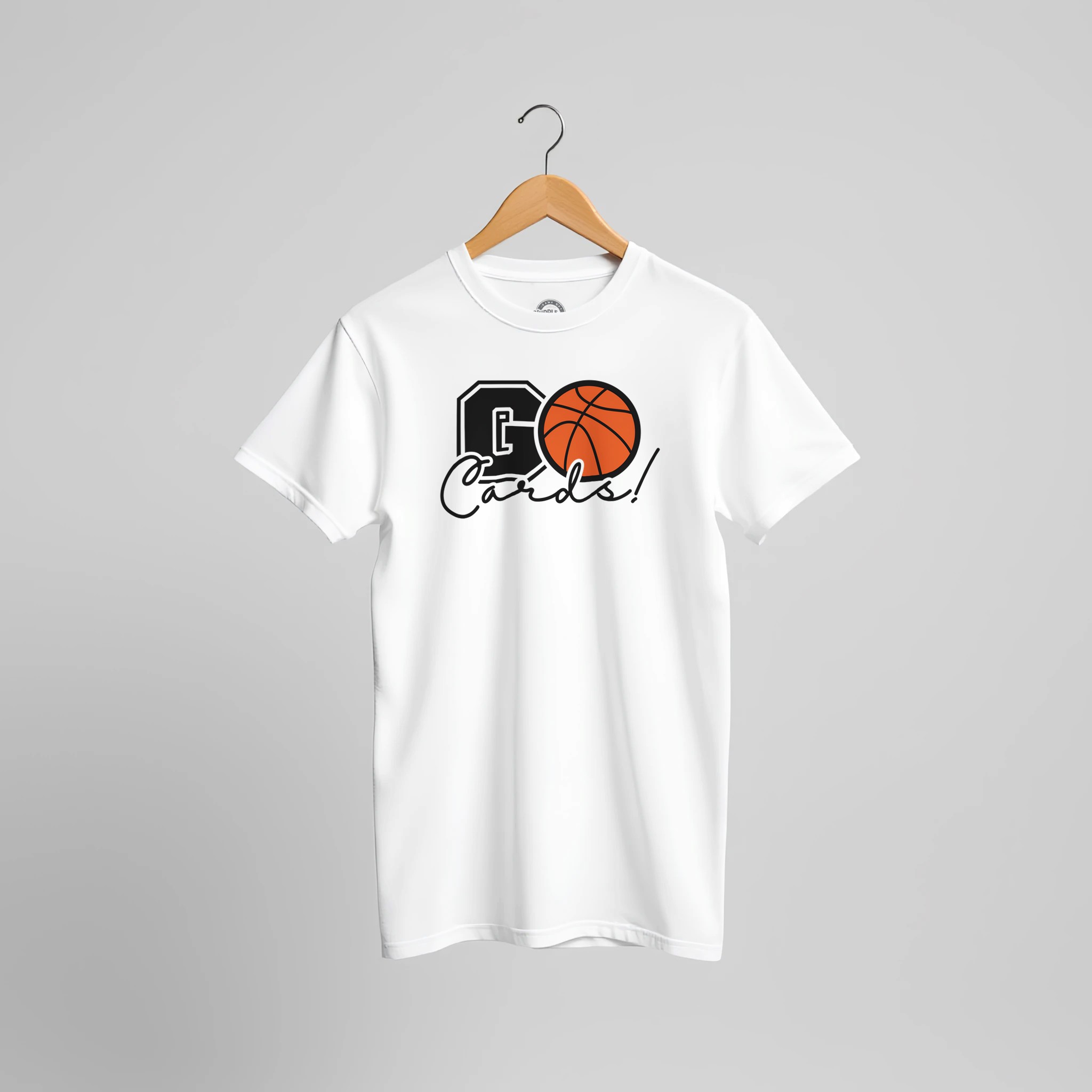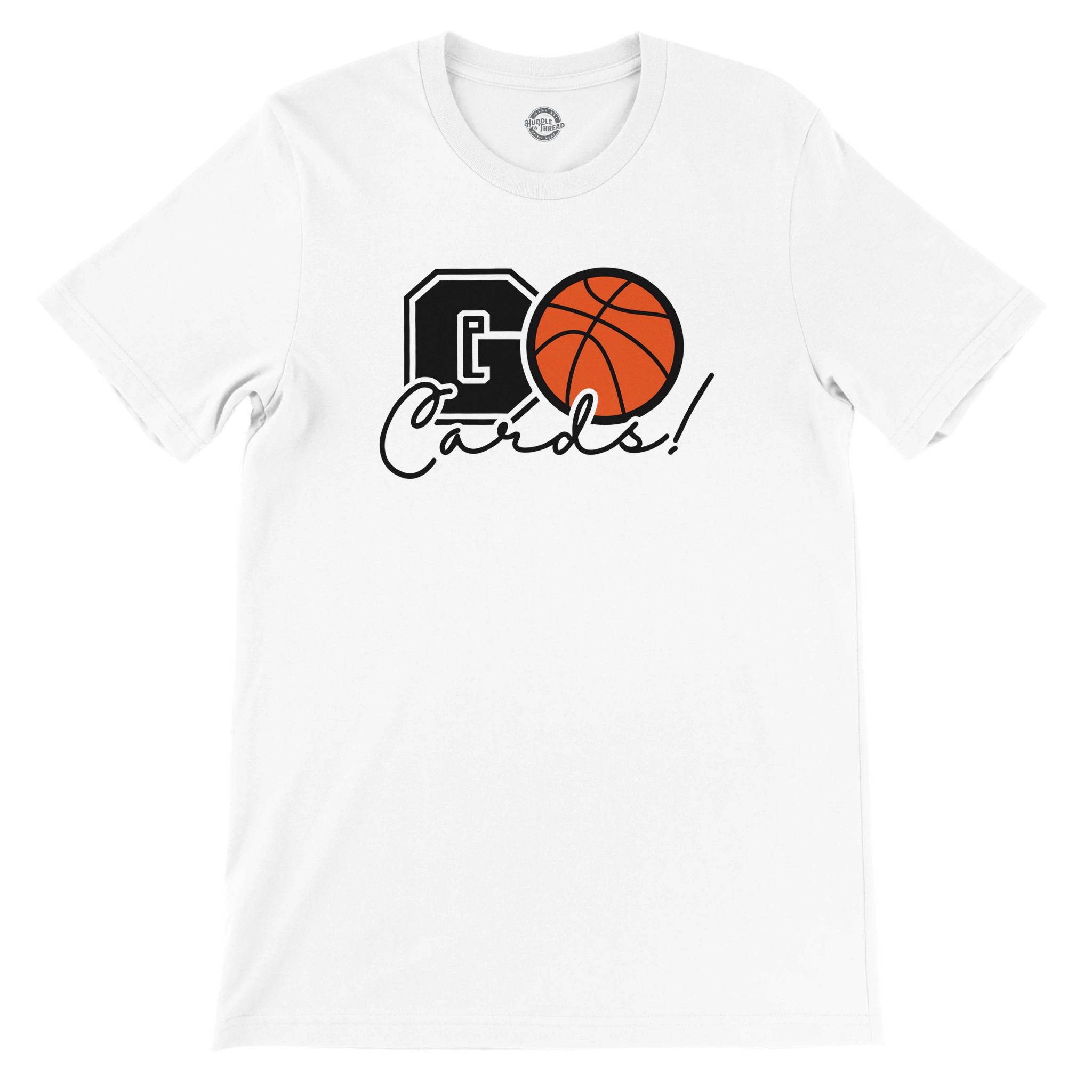 Show your team spirit with our energetic GO Cards! basketball tee – where classic varsity style meets modern design flair.