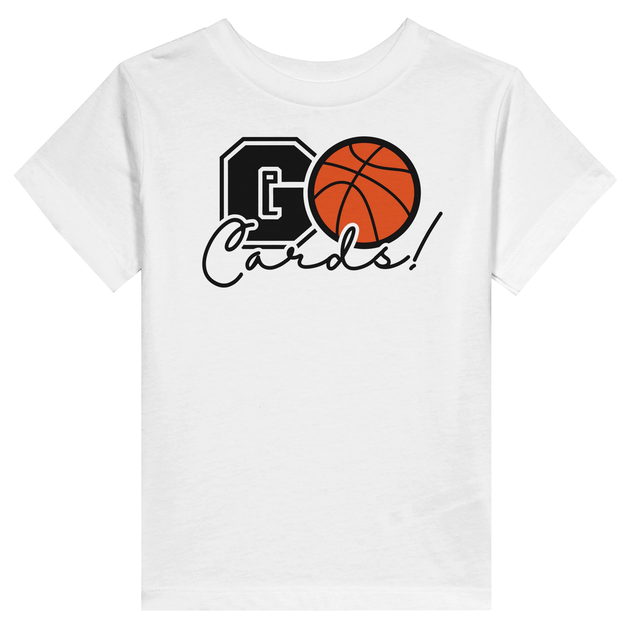 Show your team spirit with our energetic GO Cards! basketball tee – where classic varsity style meets modern design flair.
