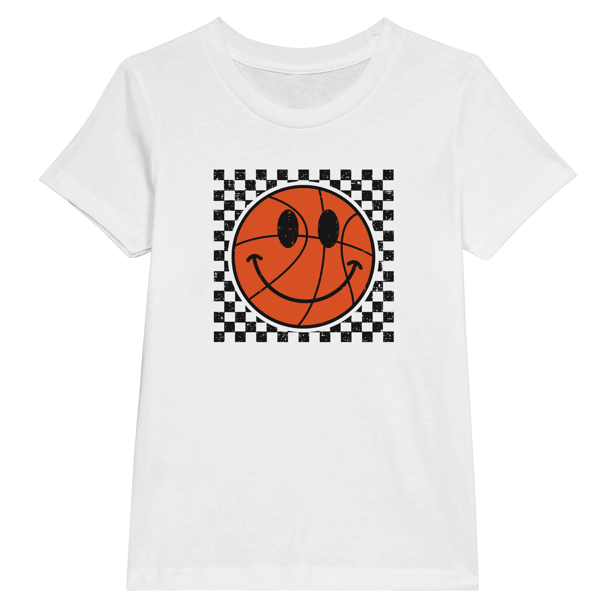 This isn’t just another basketball shirt – it’s a conversation starter that blends sport culture with iconic pop art elements. The deliberately distressed checkerboard pattern gives it that coveted vintage feel, while the basketball smiley face adds a playful touch that works for players and fans alike.