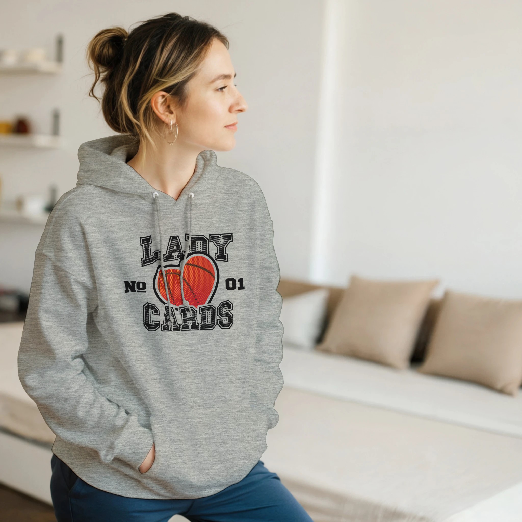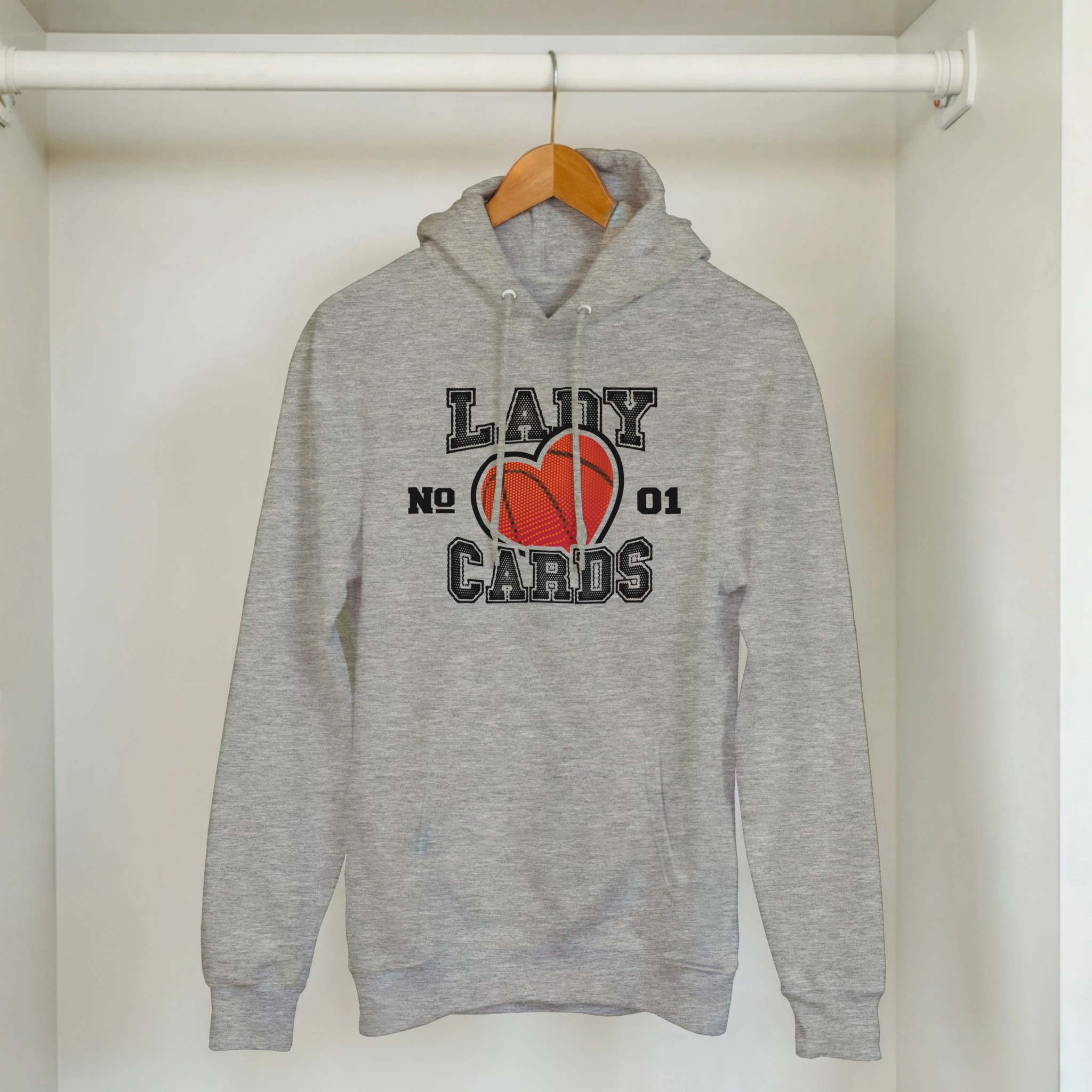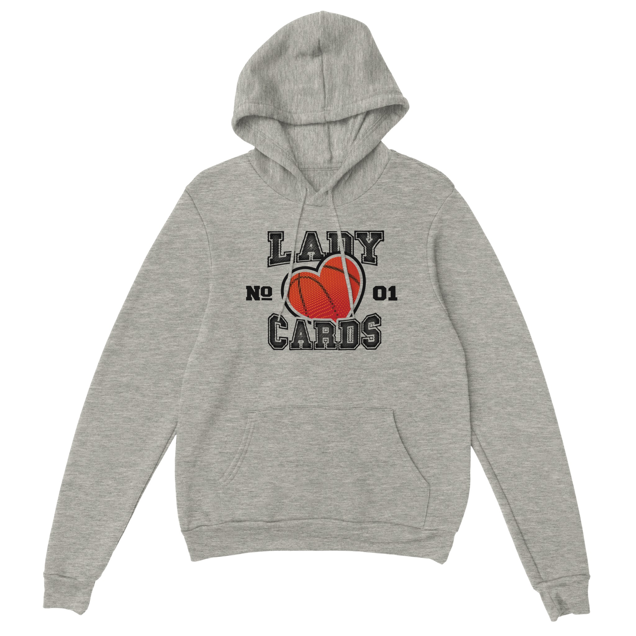 This one is a statement piece that celebrates Lady Cards basketball with creative design elements. The basketball-textured heart symbolizes passion for the game while the “No. 01” designation proudly declares championship-level spirit.
