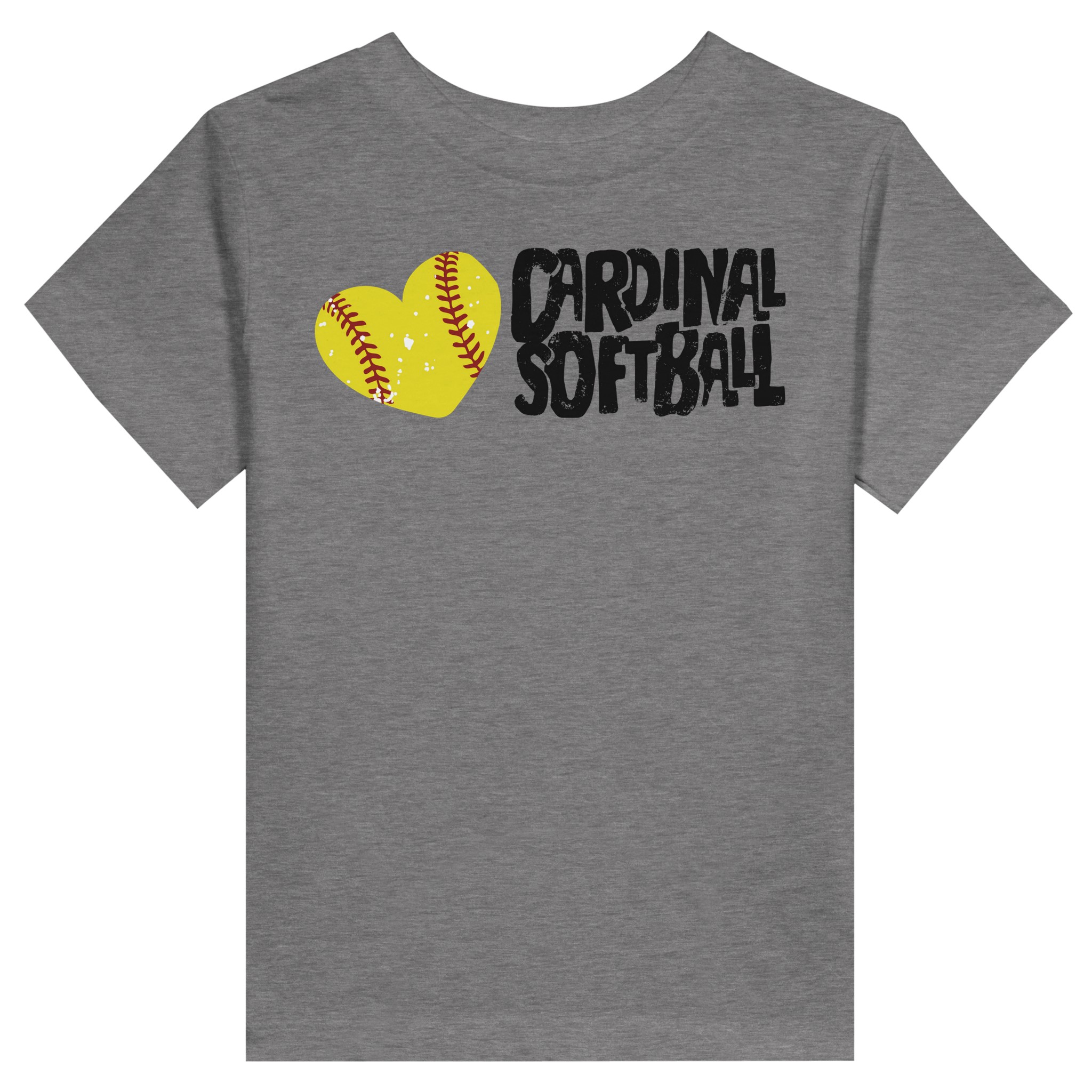 Show your true love for the game with our Cardinal Softball Heart design. Featuring a vibrant yellow softball shaped into a heart alongside bold, hand-lettered “Cardinal Softball” typography, this design is perfect for players, parents, and fans who live for every inning.