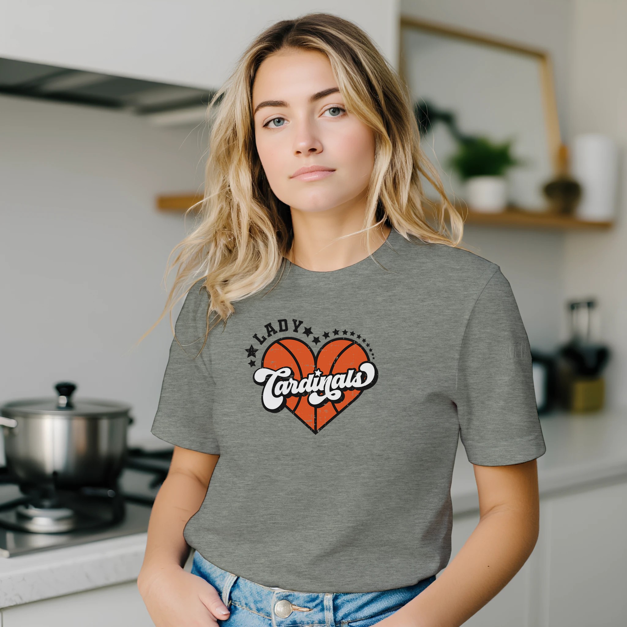 Show your team spirit with our uniquely designed Lady Cardinals tee – where vintage charm meets basketball passion.