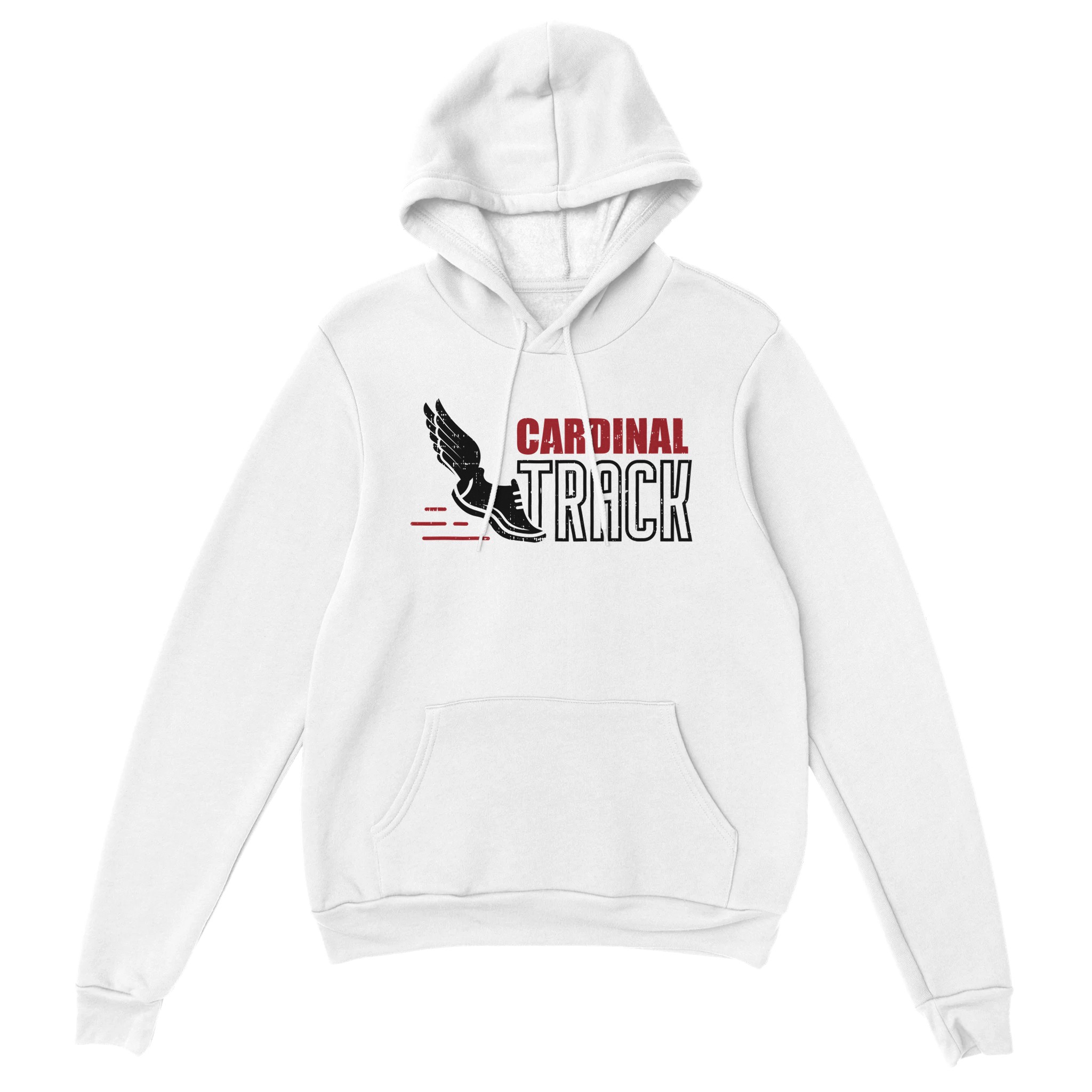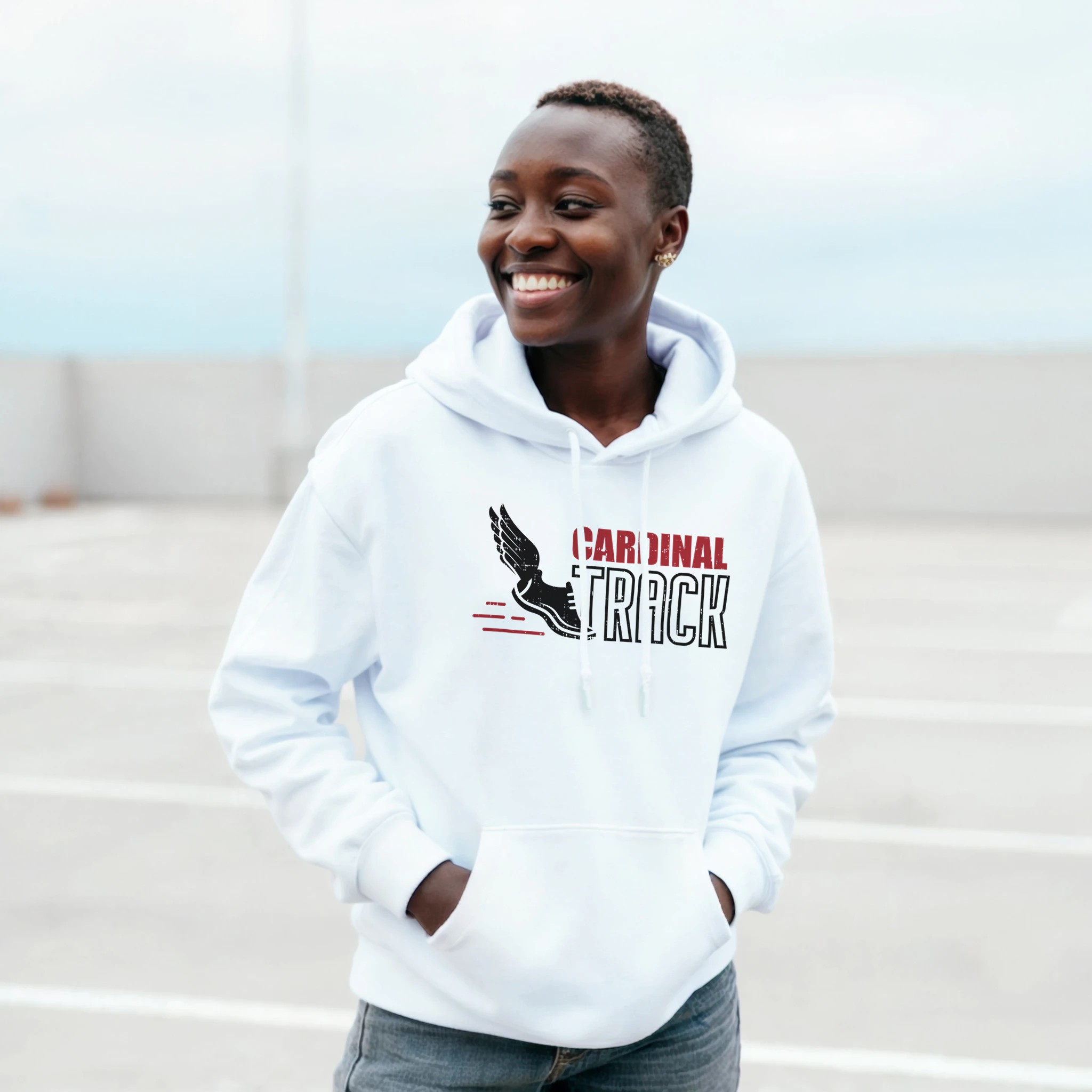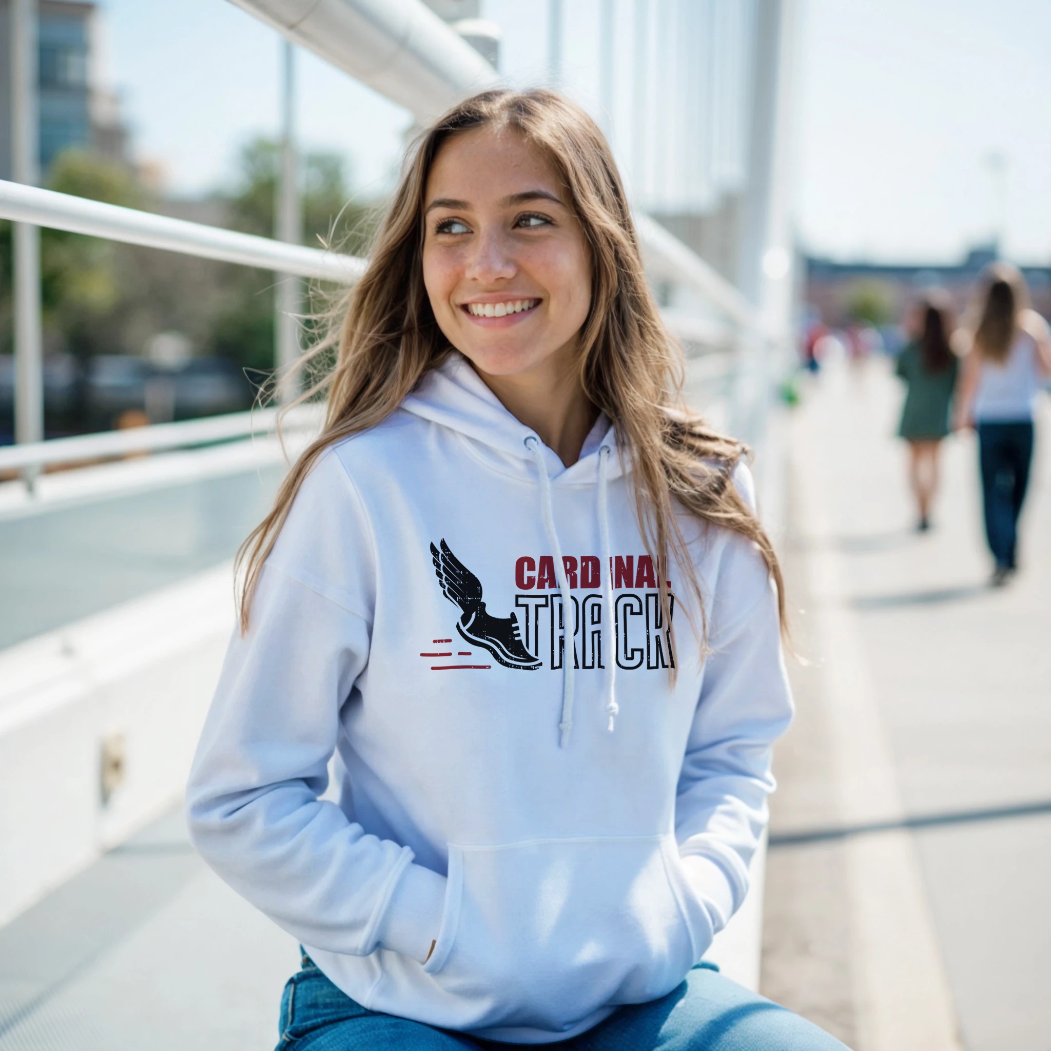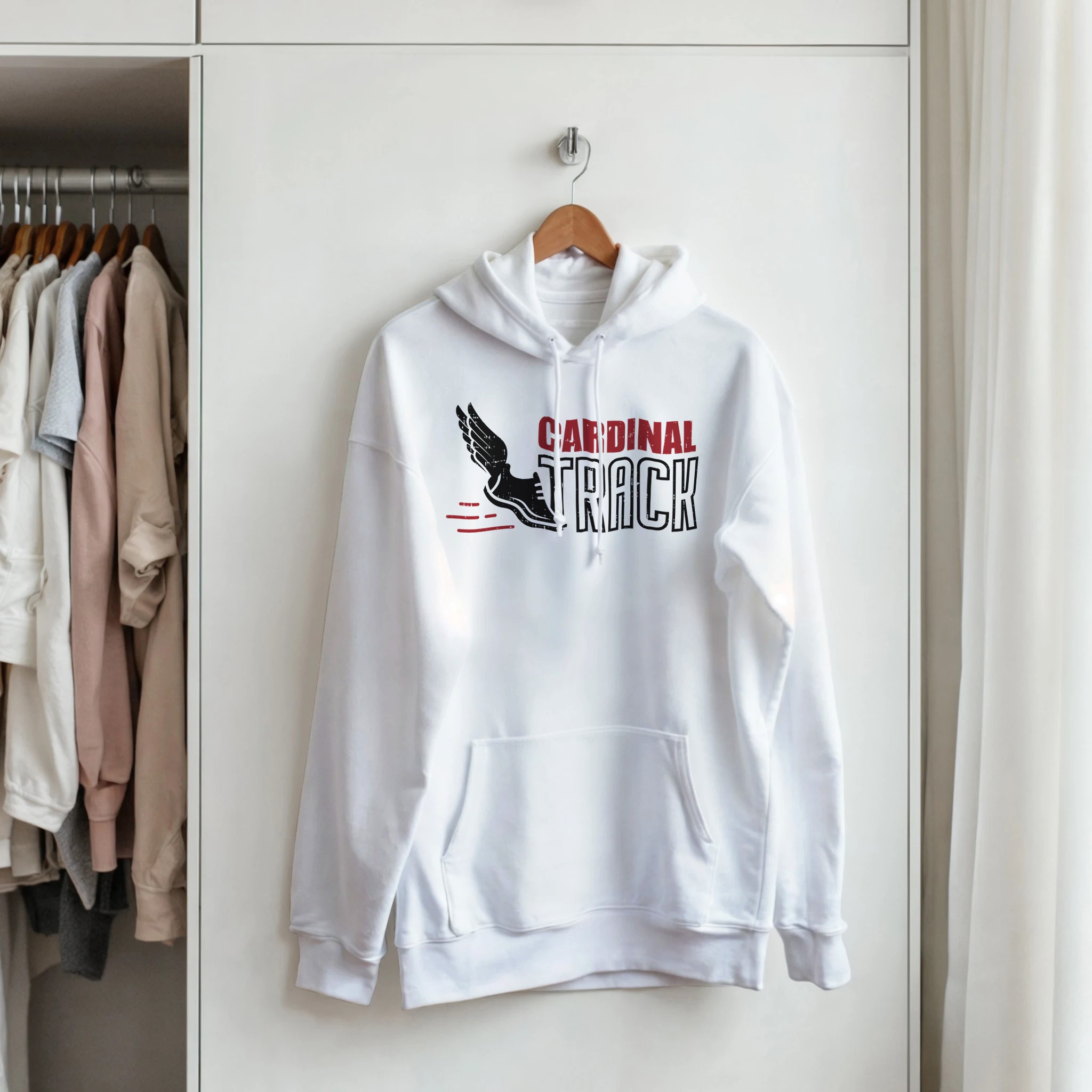 Leave the competition in the dust. This dynamic design features the legendary winged racing spike paired with bold “Cardinal Track” typography. With sleek red speed lines and a distressed vintage finish, this graphic captures the essence of pure speed. Whether you’re warming up in a cozy hoodie or hitting the pavement in a classic tee, this is the gear built for your fastest miles.