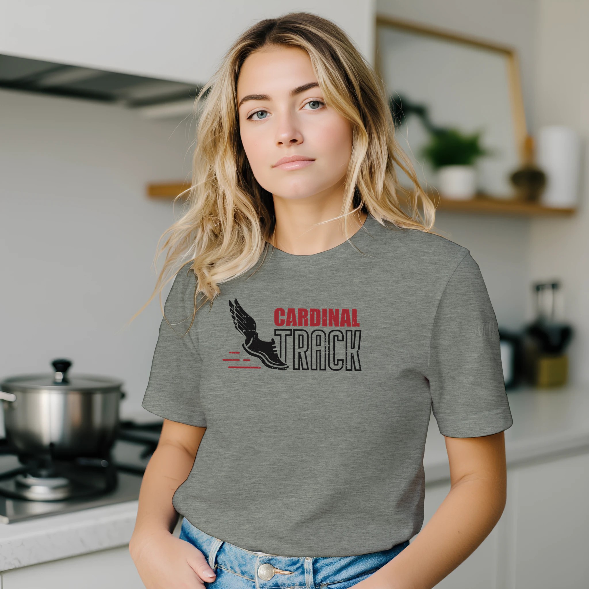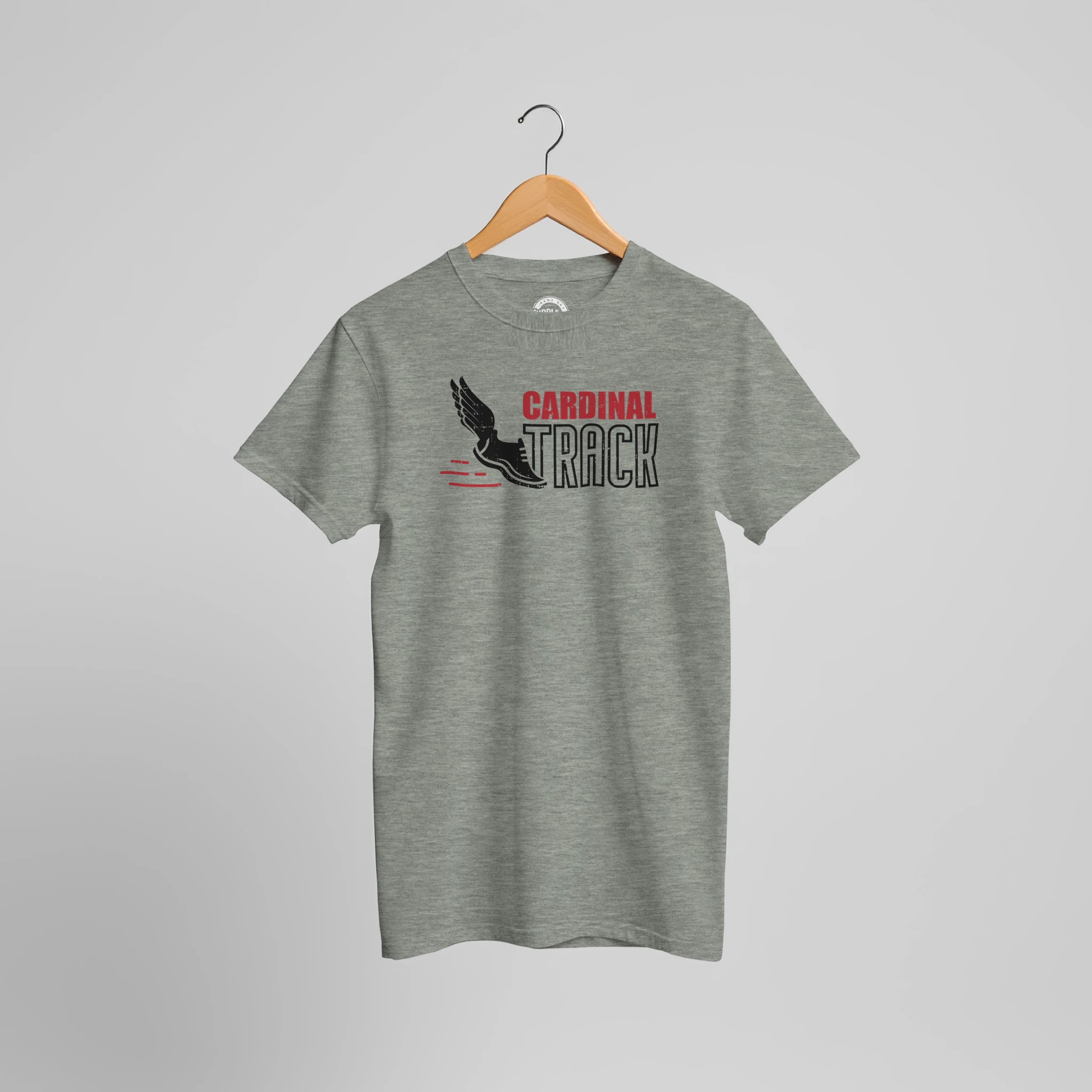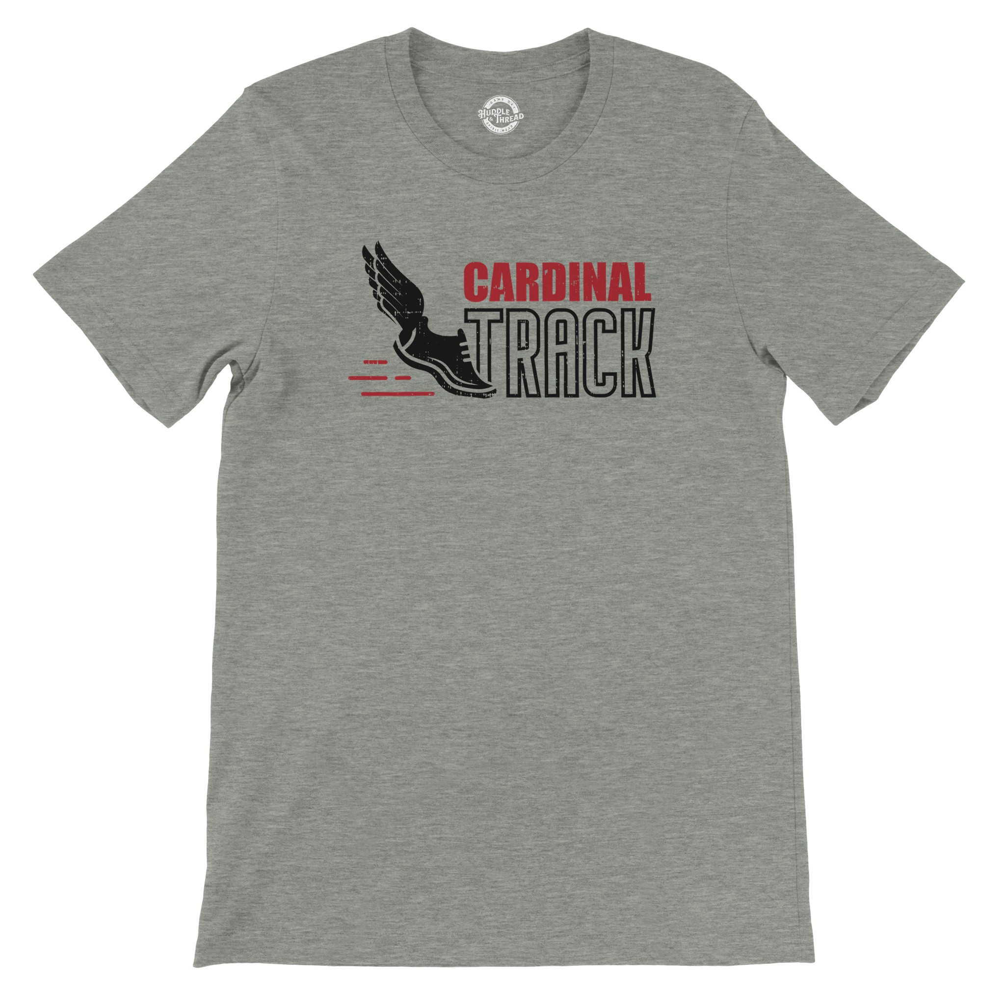 Leave the competition in the dust. This dynamic design features the legendary winged racing spike paired with bold “Cardinal Track” typography. With sleek red speed lines and a distressed vintage finish, this graphic captures the essence of pure speed. Whether you’re warming up in a cozy hoodie or hitting the pavement in a classic tee, this is the gear built for your fastest miles.