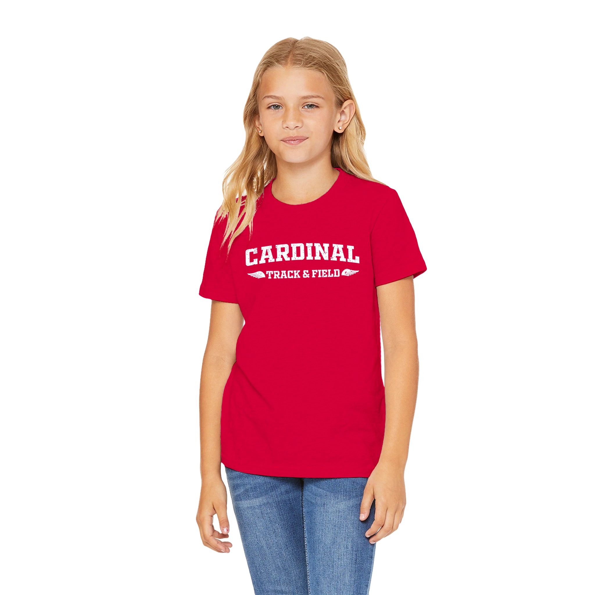 Light Cardinal Track & Field Legacy Banner Youth Tee – Red