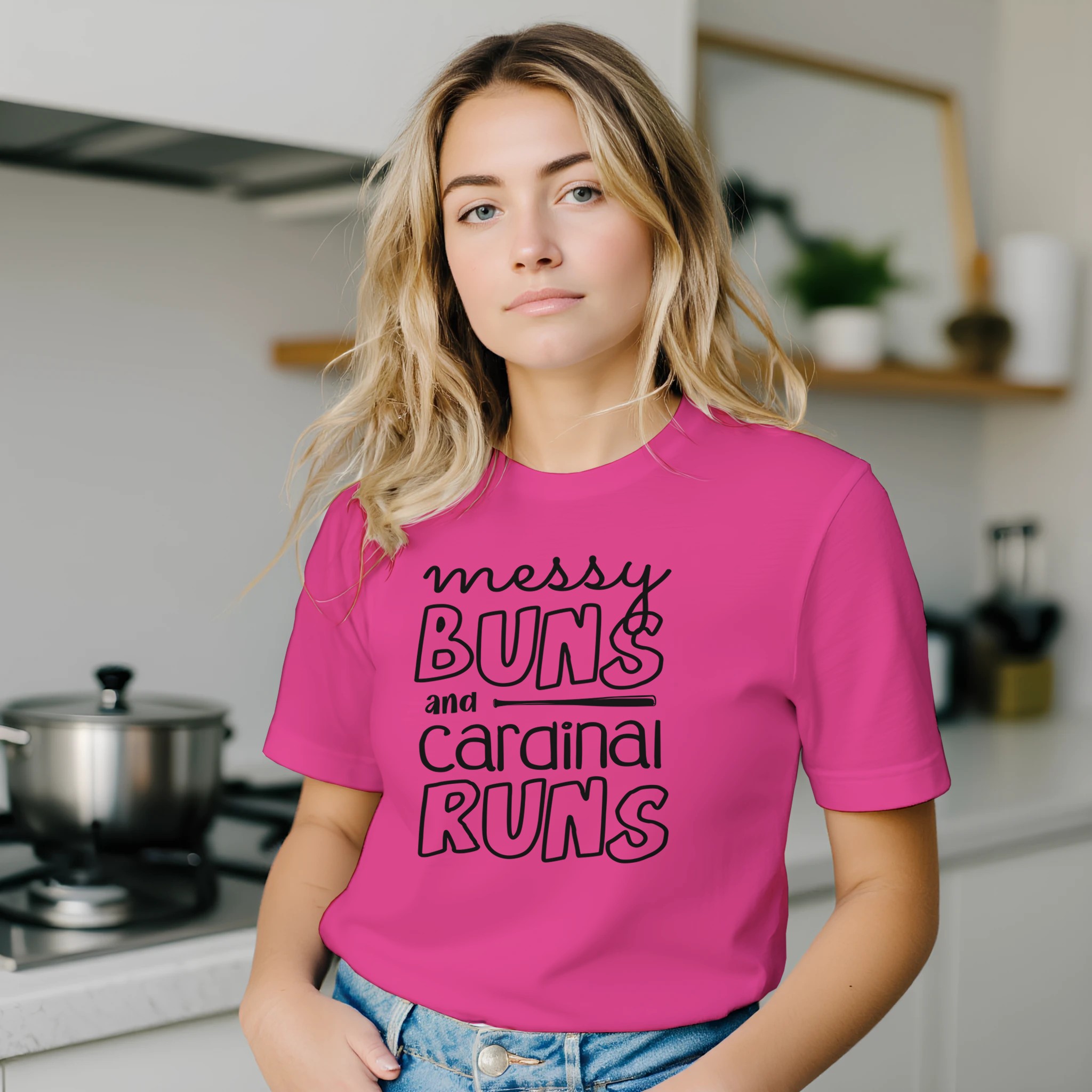 Embrace the beautiful chaos of the diamond with the “Messy Buns and Cardinal Runs” tee. This design celebrates the grit and hustle of every Lady Cardinal who steps onto the field with a hair tie and a dream. Featuring a clean, hand-lettered aesthetic, it’s the perfect shirt for tournament weekends, practice hair, and every home run in between.