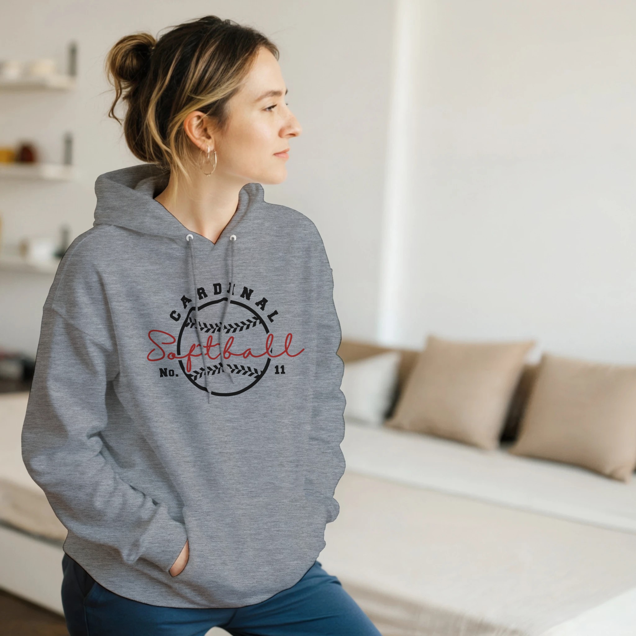 - Features a double-lined hood with matching drawstring.