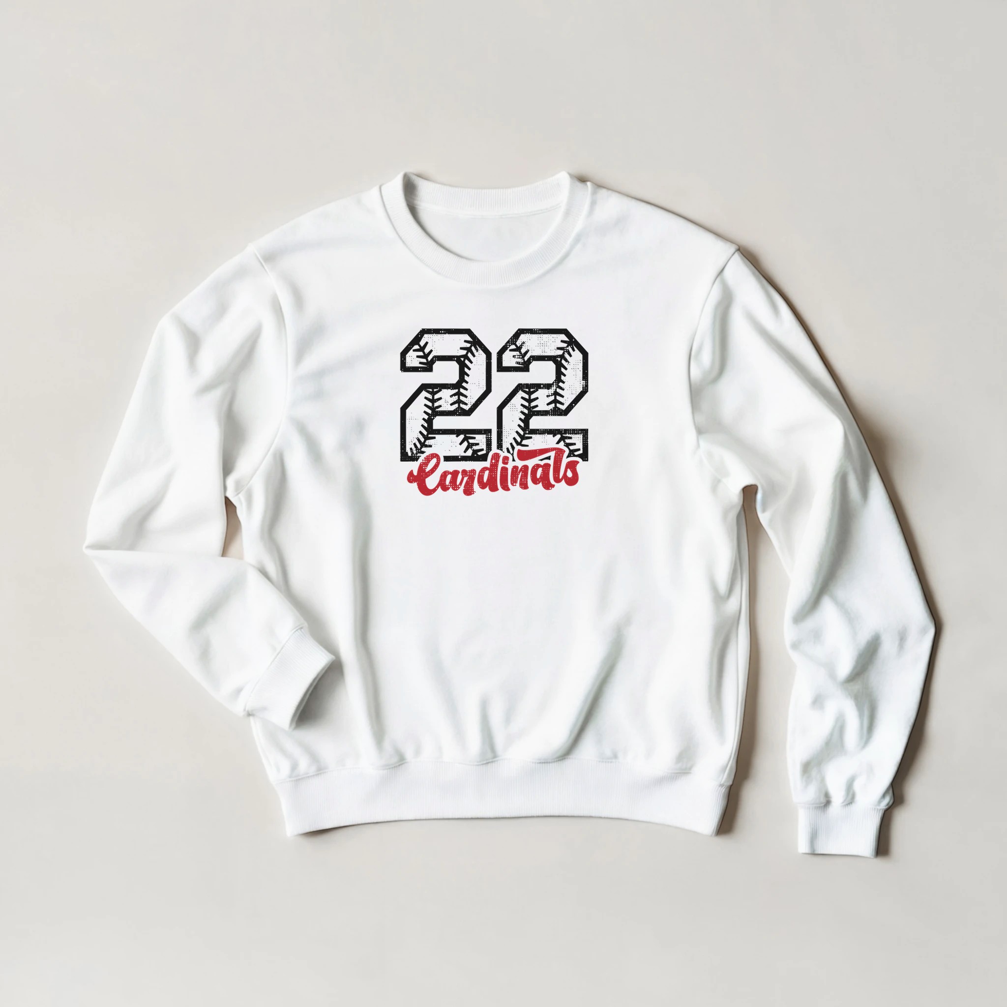 Rep your favorite player or show your team spirit with this bold and stylish Cardinals Baseball shirt. The large distressed player number is designed with a stitched baseball texture, giving it an authentic, sporty vibe. Below the number, the word Cardinals is written in a bold red script, adding the perfect pop of team pride. Personalize it with your favorite player’s number.