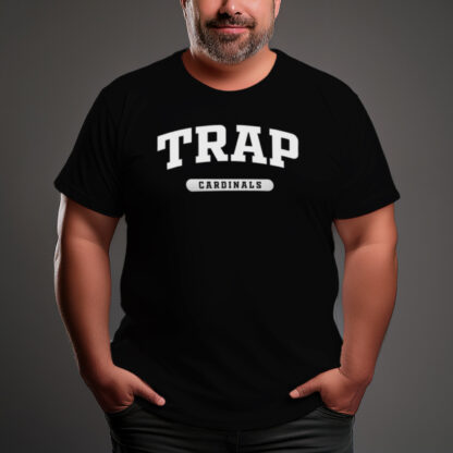 Go back to basics with a timeless, high-impact design that puts your team identity front and center. Featuring bold, arched “TRAP” typography and a clean “Cardinals” banner, this graphic delivers a classic collegiate aesthetic that never goes out of style. The high-contrast black print makes it a versatile staple for any athlete or supporter.