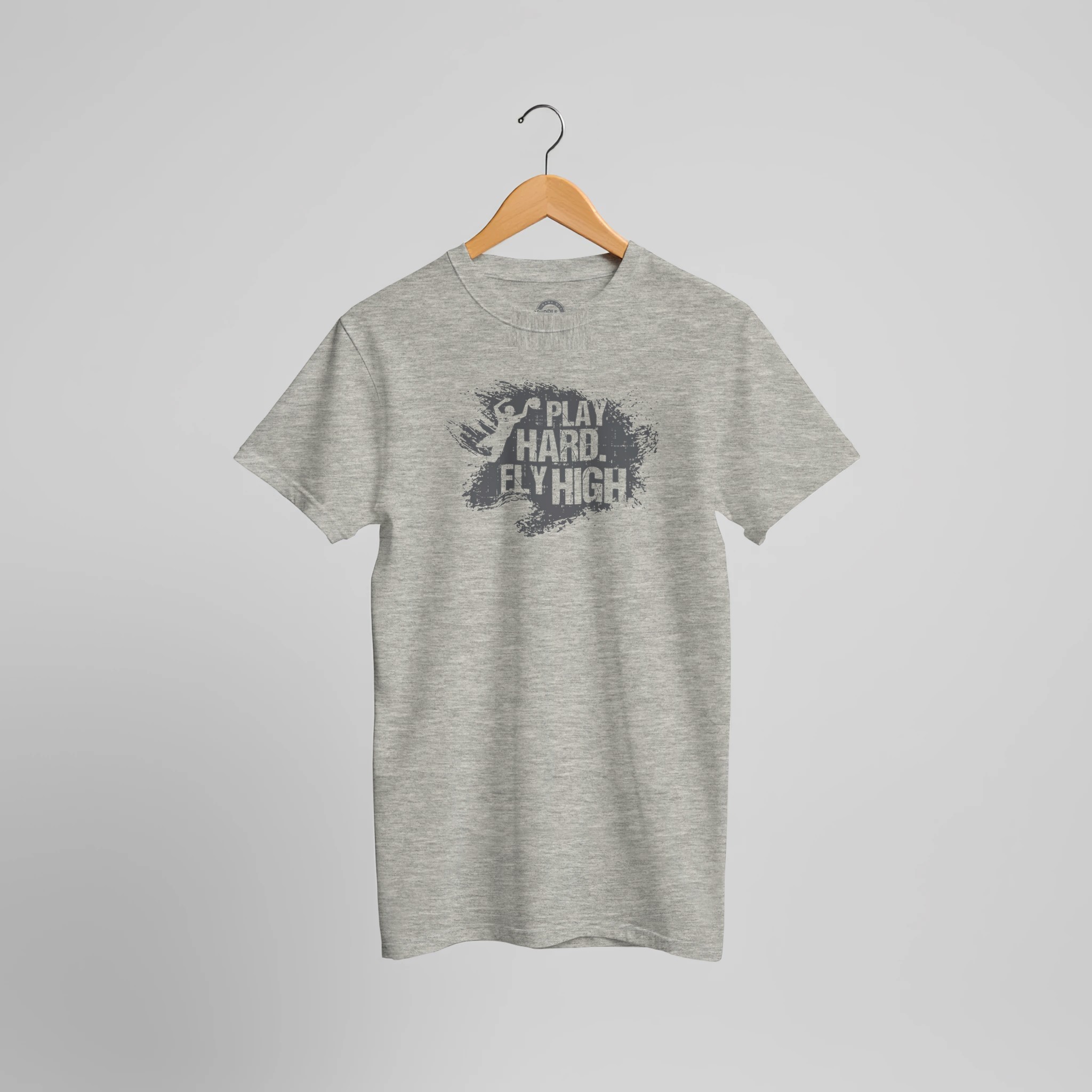 This tee is a wearable celebration of the game’s most exciting moments. The powerful combination of motivational text and dynamic player silhouette captures the essence of basketball’s gravity-defying action, while the artistic splatter effect adds contemporary urban style.
