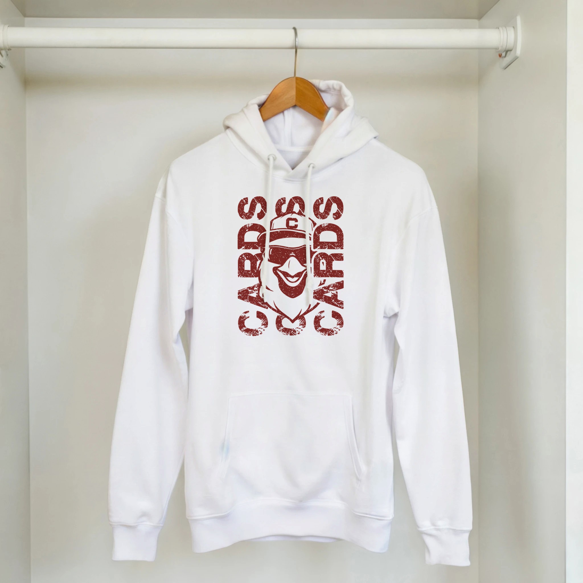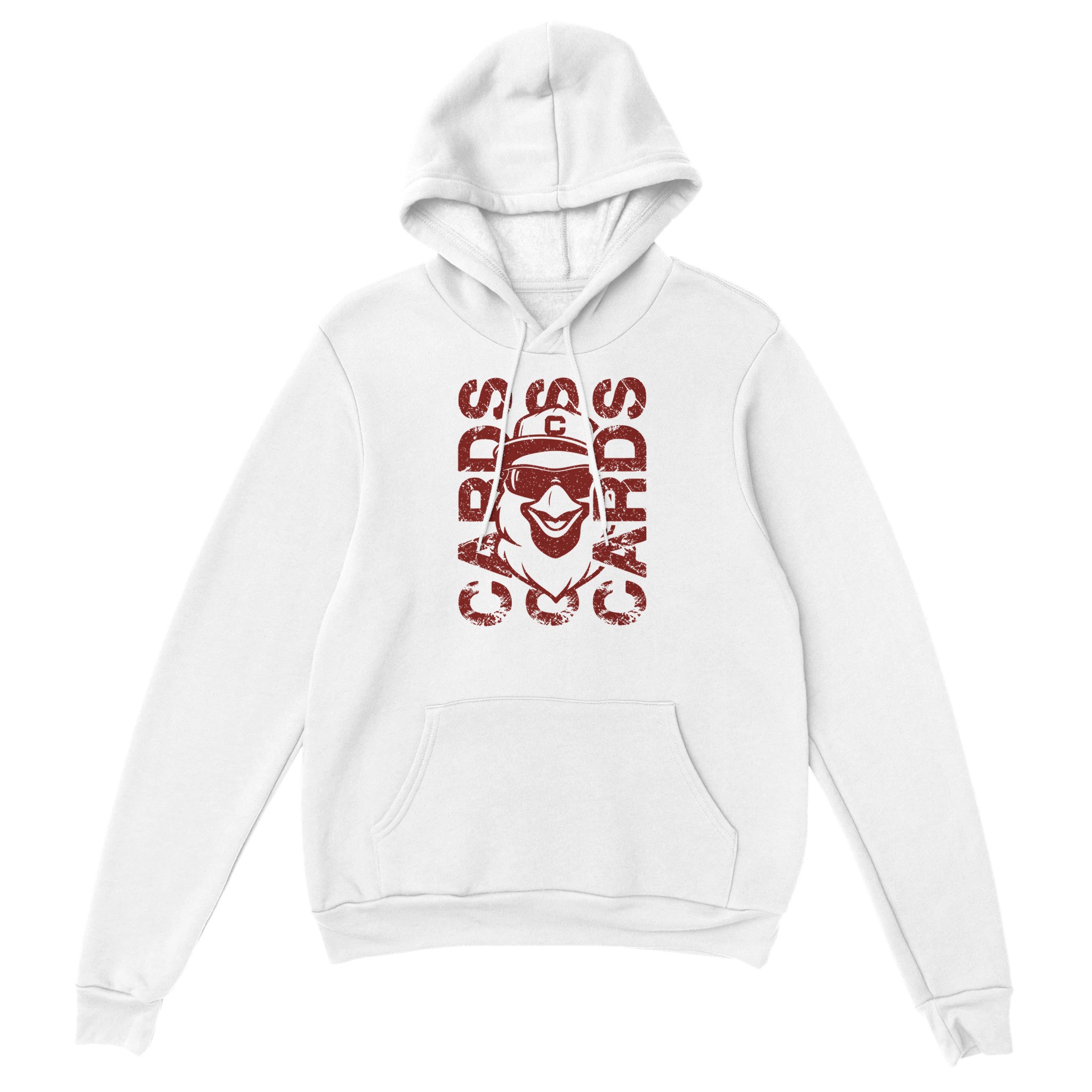 Show off your Cardinal pride with this bold and stylish “CARDS” mascot design. Featuring a retro, distressed graphic and a cool shades-wearing cardinal mascot, this shirt brings the perfect mix of team spirit and attitude. The stacked “CARDS” lettering adds a strong game-day vibe, making it a standout piece for players, parents, and fans alike.