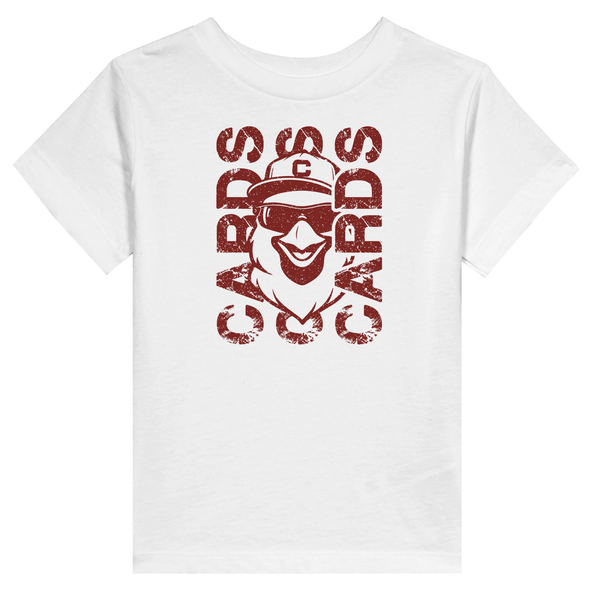 Show off your Cardinal pride with this bold and stylish “CARDS” mascot design. Featuring a retro, distressed graphic and a cool shades-wearing cardinal mascot, this shirt brings the perfect mix of team spirit and attitude. The stacked “CARDS” lettering adds a strong game-day vibe, making it a standout piece for players, parents, and fans alike.