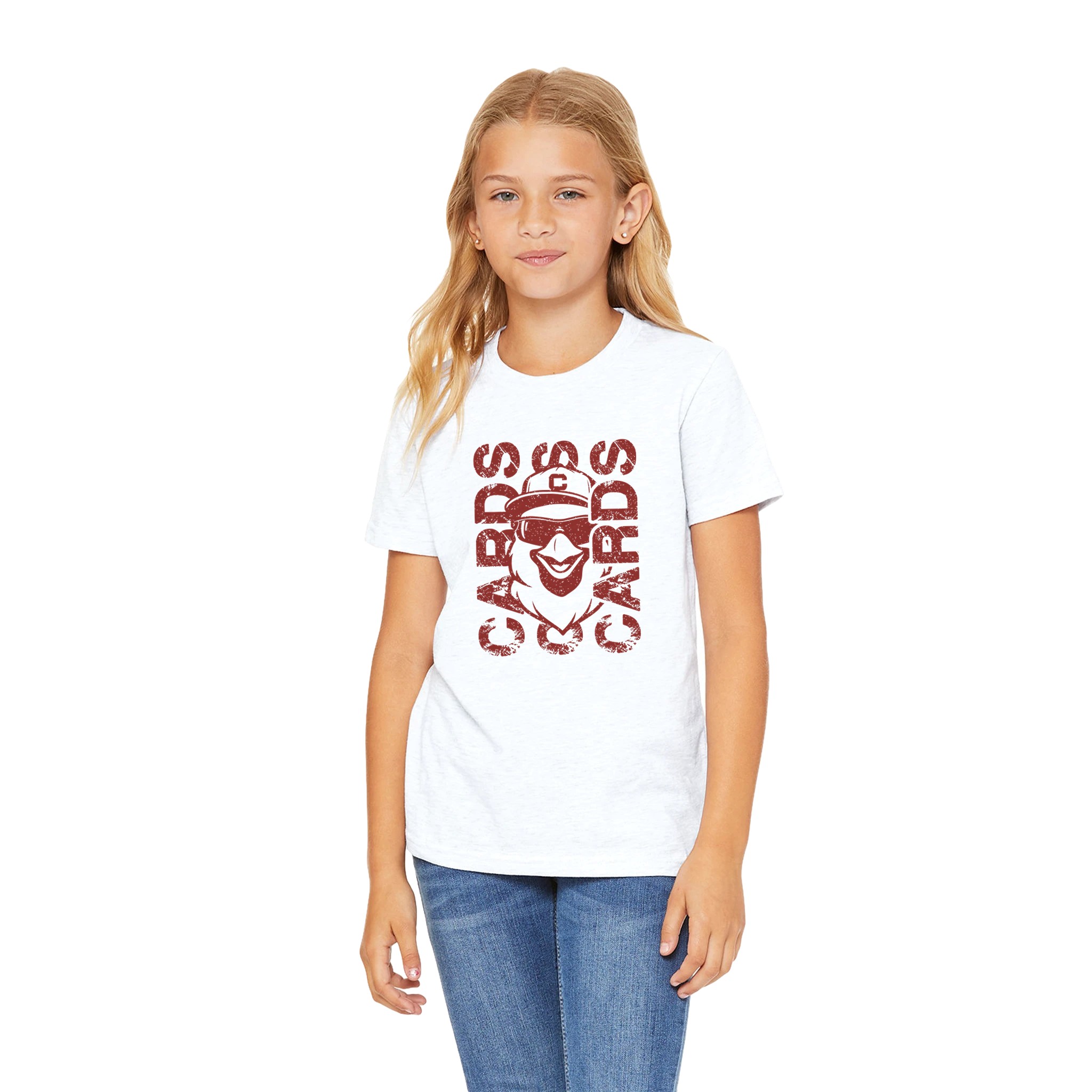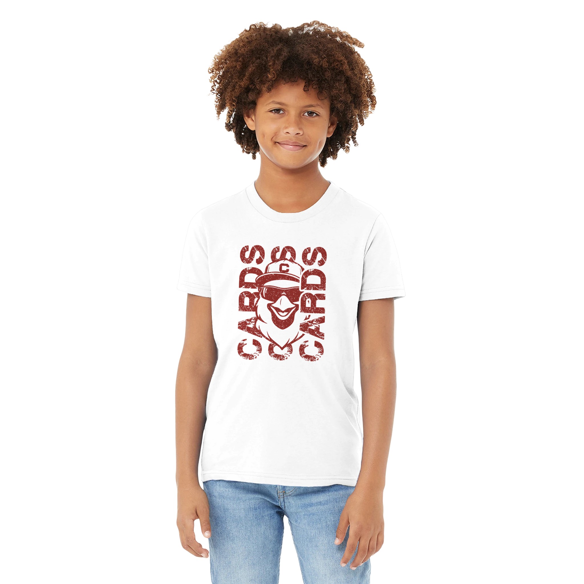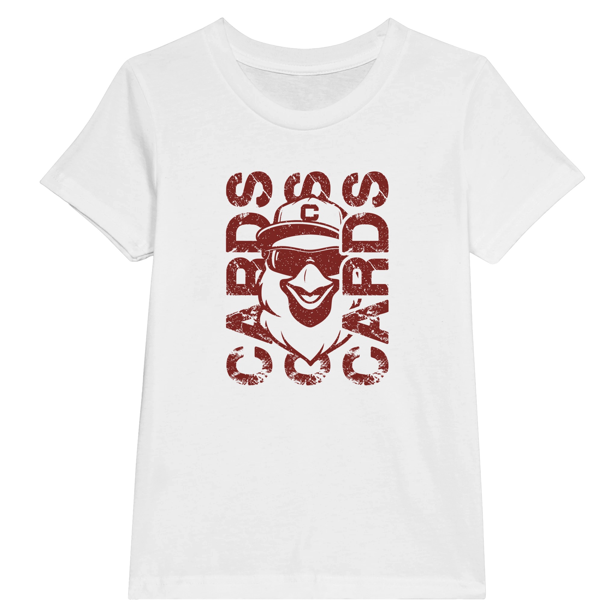 Show off your Cardinal pride with this bold and stylish “CARDS” mascot design. Featuring a retro, distressed graphic and a cool shades-wearing cardinal mascot, this shirt brings the perfect mix of team spirit and attitude. The stacked “CARDS” lettering adds a strong game-day vibe, making it a standout piece for players, parents, and fans alike.