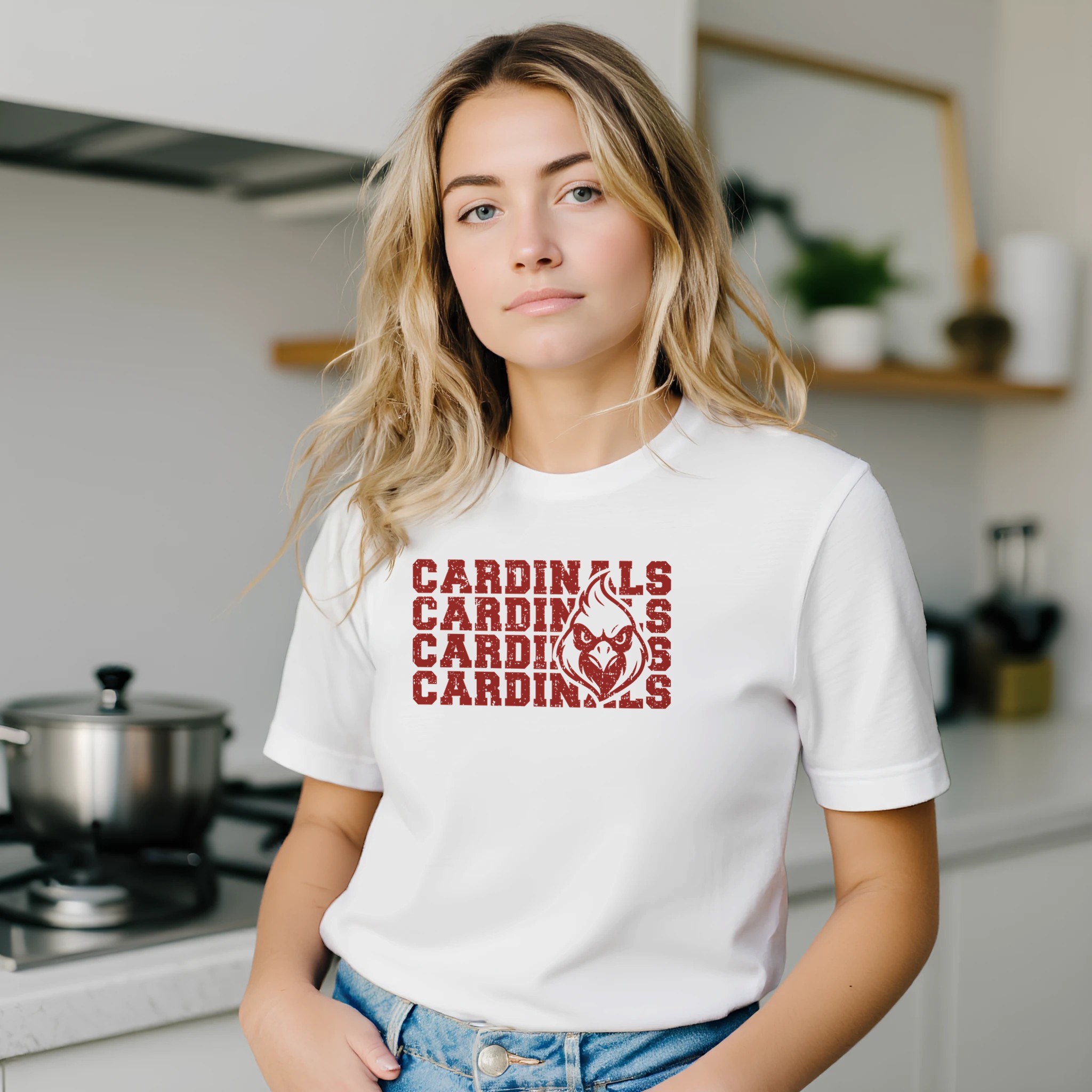 Make a bold statement with our dynamic Cardinals repeat design! This clean t-shirt design features an eye-catching graphic that takes team pride to the next level. The rich print against the crisp background creates maximum impact, while the distressed texture gives this shirt an authentic, battle-tested look that shows you’ve been a dedicated fan through every season. This isn’t just a t-shirt – it’s a declaration of Cardinal pride.