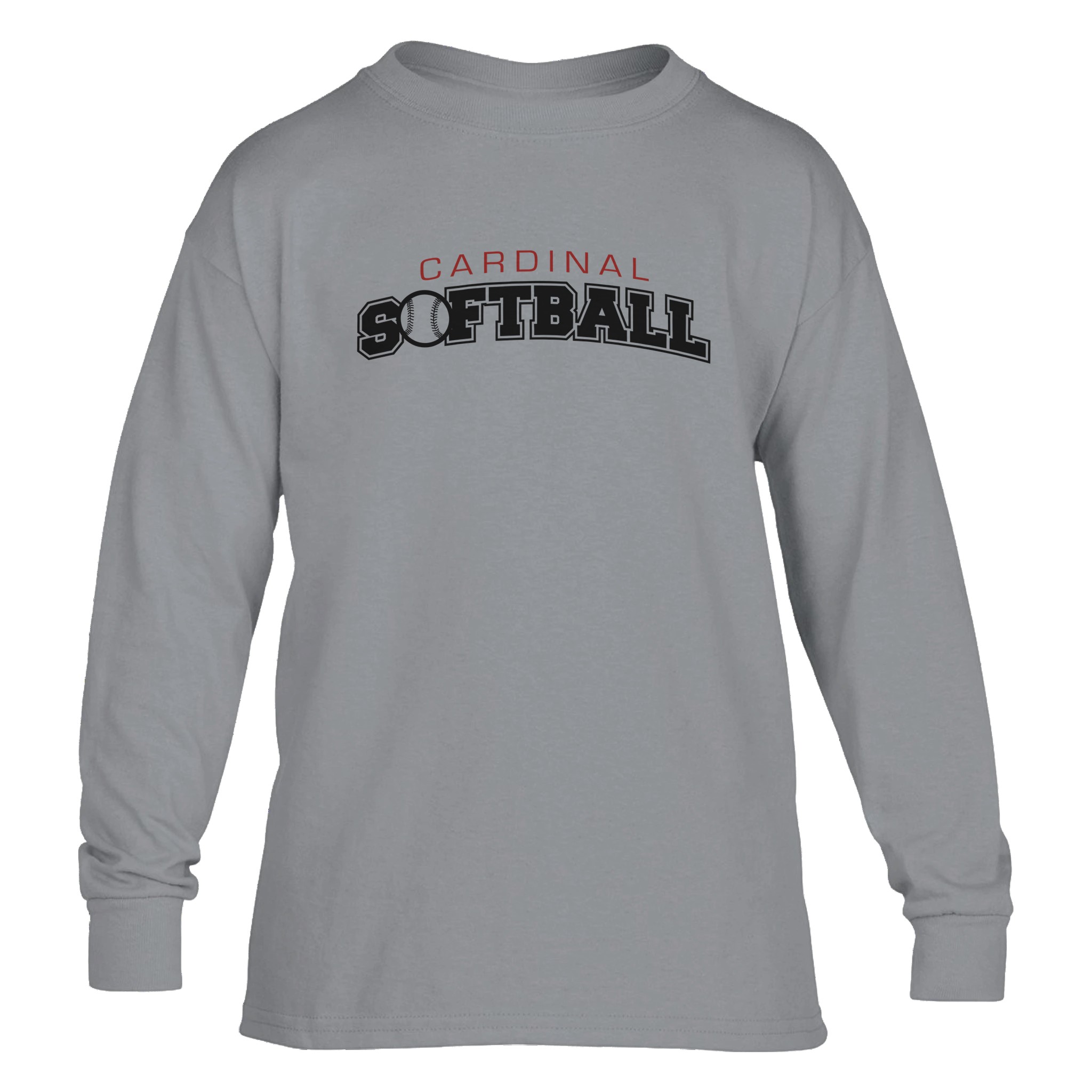 Hit a home run with your game day style in our Cardinal Softball Block design. Featuring a classic arched "Softball" script with a clean softball icon and "Cardinal" accents, this design is the perfect balance of modern athletic wear and traditional school spirit.