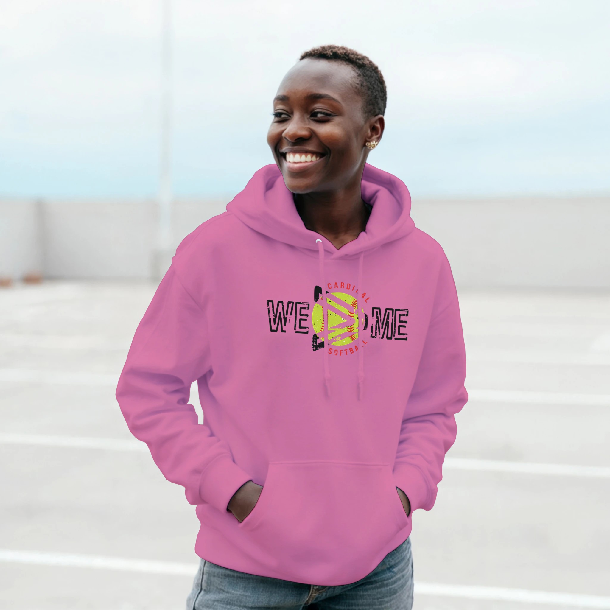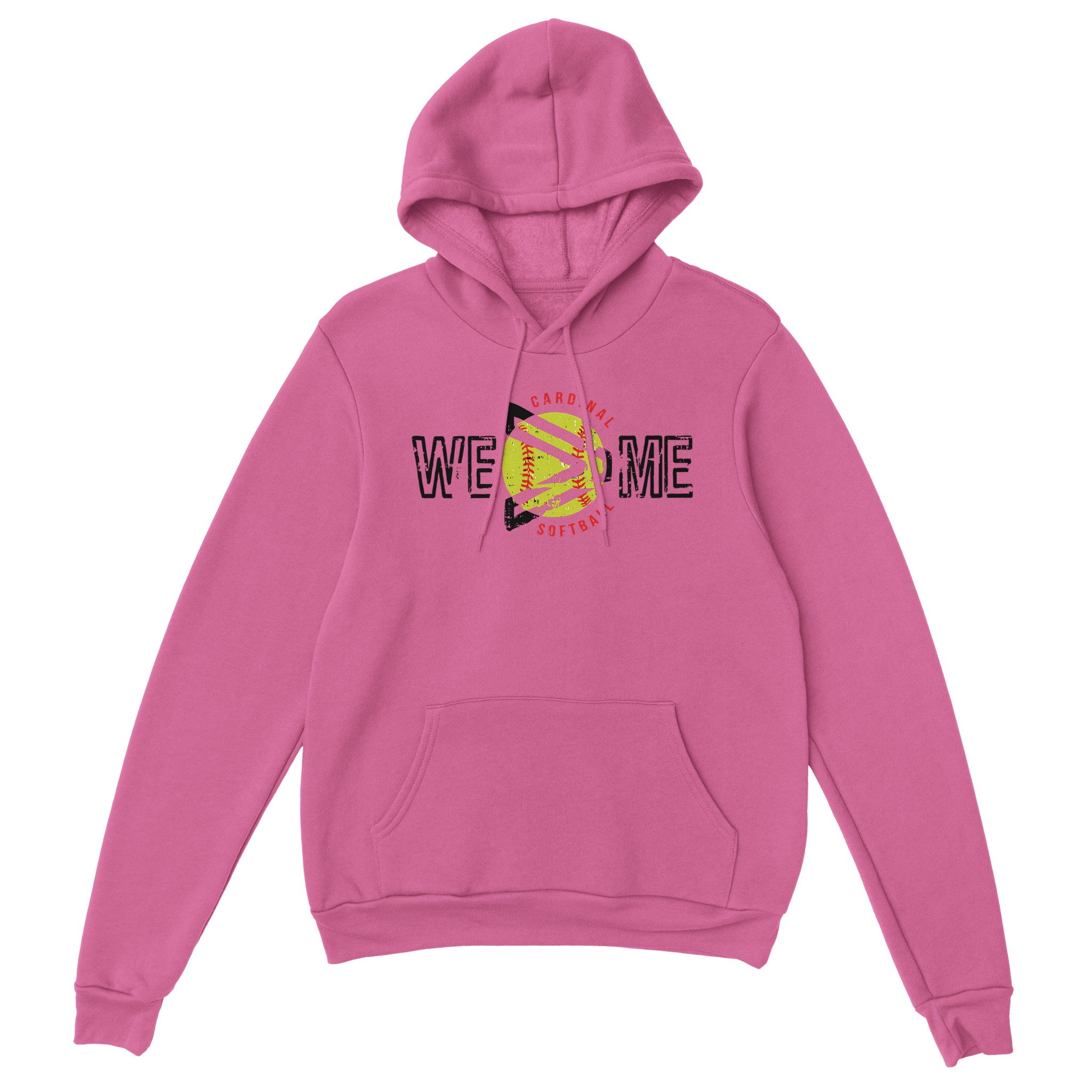 Lead with heart and play for the team! This WE > ME Cardinal Softball shirt features a unique circular design that places the “greater than” symbol right over a bright yellow softball. With its bold, distressed black lettering and “Cardinal Softball” arched in red, it is the perfect statement piece for players and coaches who know that victory is a collective effort.