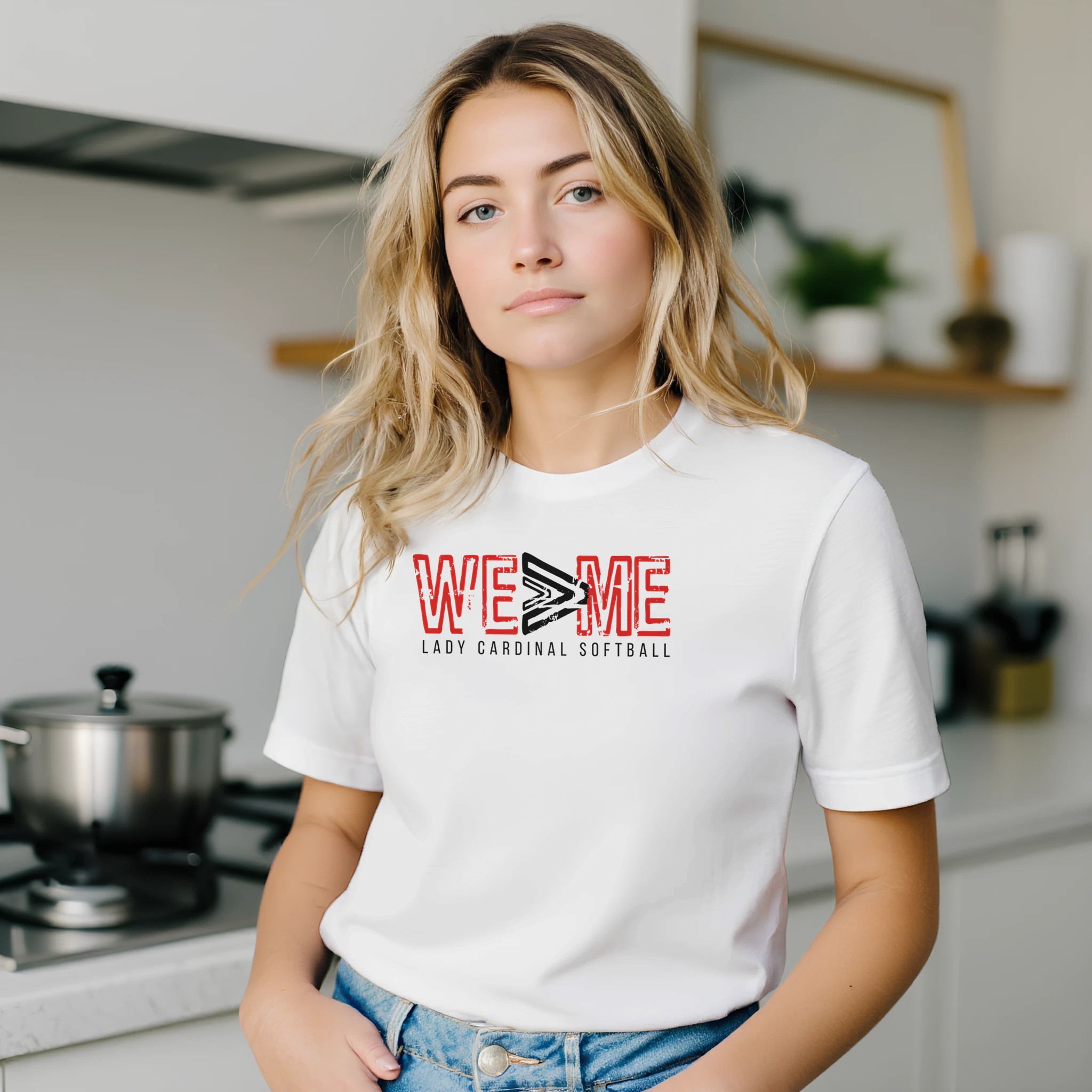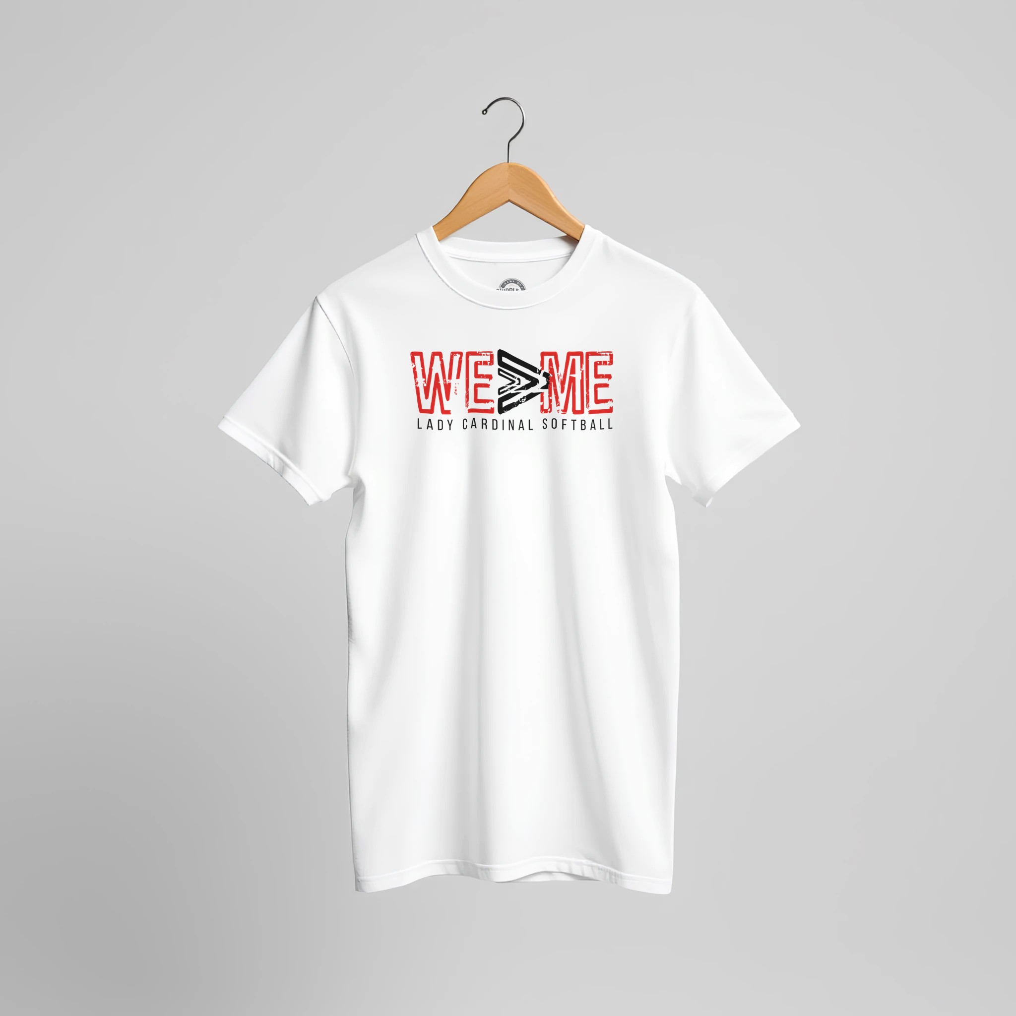 Show the world what Lady Cardinal softball is all about. This clean, high-impact white shirt features the “WE > ME” symbol in a rugged, varsity-style print, underscoring a commitment to selfless play and collective victory. Whether you’re in the middle of a high-stakes tournament or training in the off-season, this shirt keeps the team’s core values front and center.